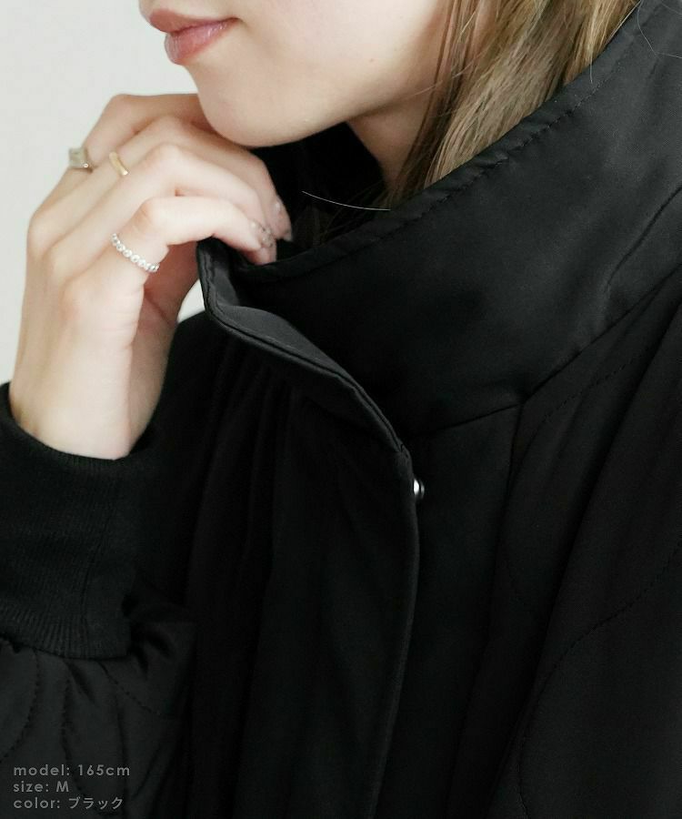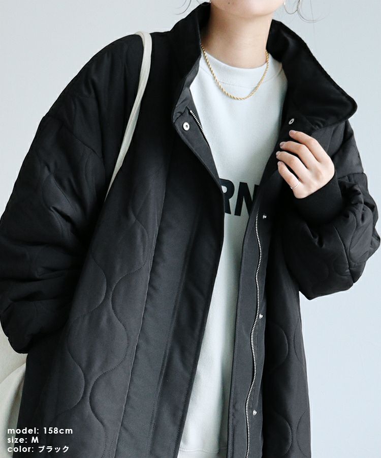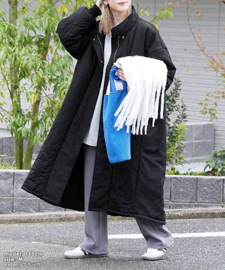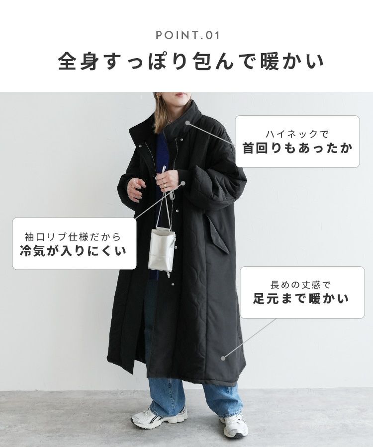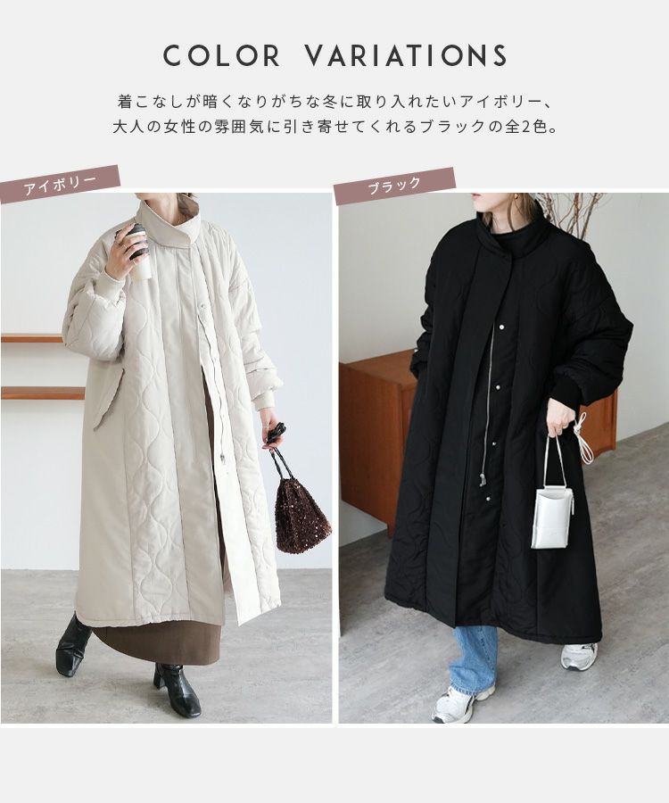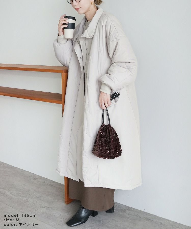 キルト切替スタンドネックロングコート(y8128) 宅配便発送