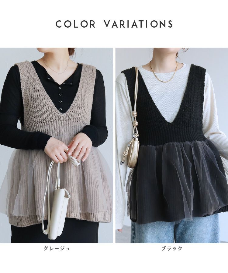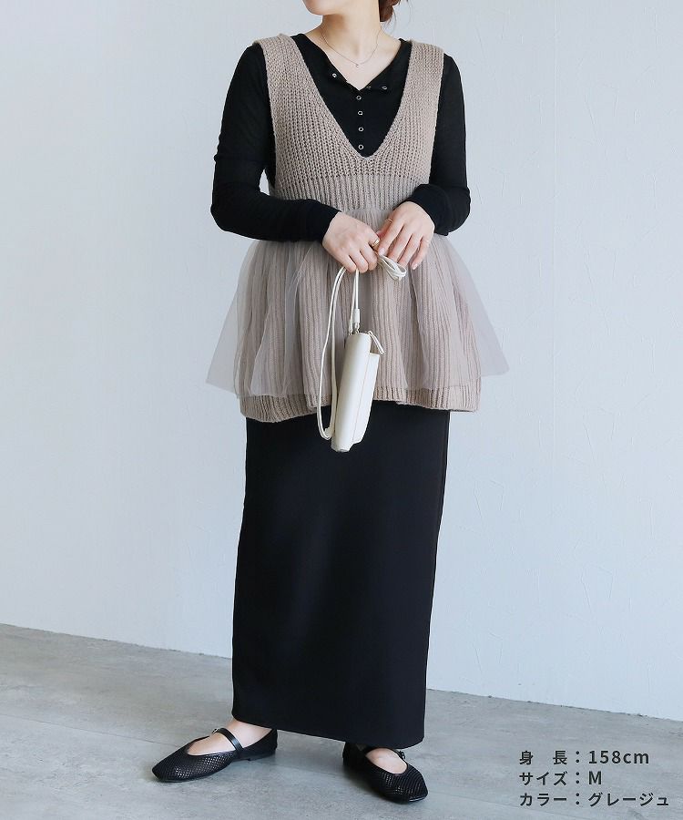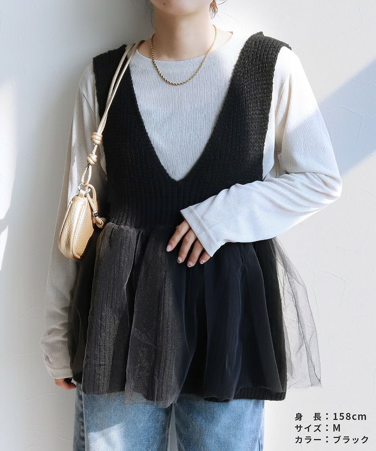 他の画像を見る 春の早割 ニット×チュールVネックペプラムベスト(bel-y-77502) 宅配便発送 ¥ 1,980 税込 販売期間 2026/01/29 12:00 〜 2026/02/05 11:59 詳細を見る お気に入りに登録する