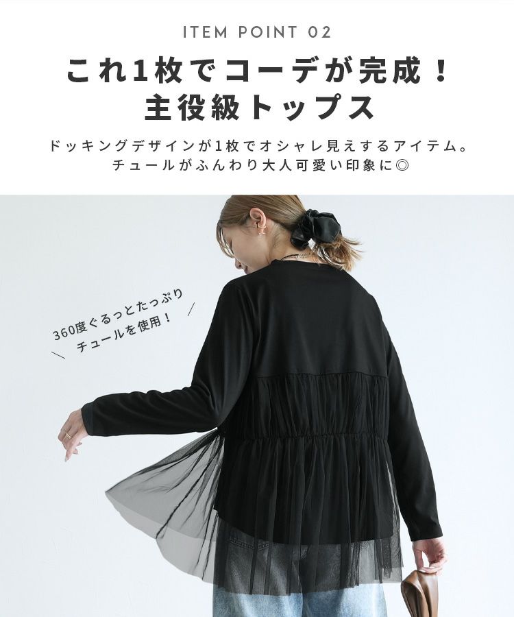 他の画像を見る 春の早割 チュールドッキング長袖Tシャツ(my-4N35-9304) ネコポス発送10 ¥ 2,490 税込 販売期間 2026/01/29 12:00 〜 2026/02/05 11:59 詳細を見る お気に入りに登録する
