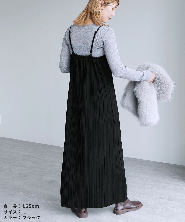レディース ワンピース ワンピ プリーツワンピ プリーツワンピース ランダムプリーツ プリーツ プルオーバー 立体感 縦長 Iライン スタイルアップ キャミ キャミワンピ キャミワンピ―ス きれいめ カジュアル キレカジ シンプル 大人女子 30代ファッション 30代コーデ 無地 柄 ゼブラ グレージュ グレーベージュ ブラック 黒