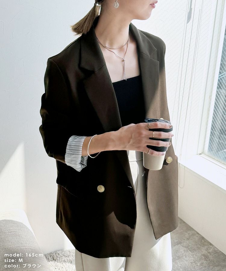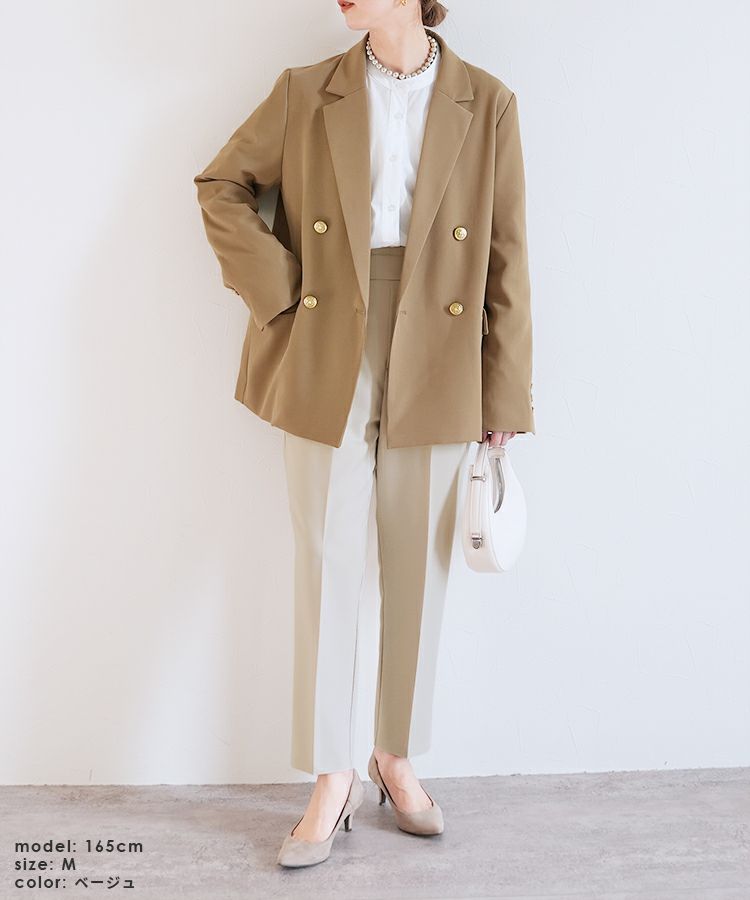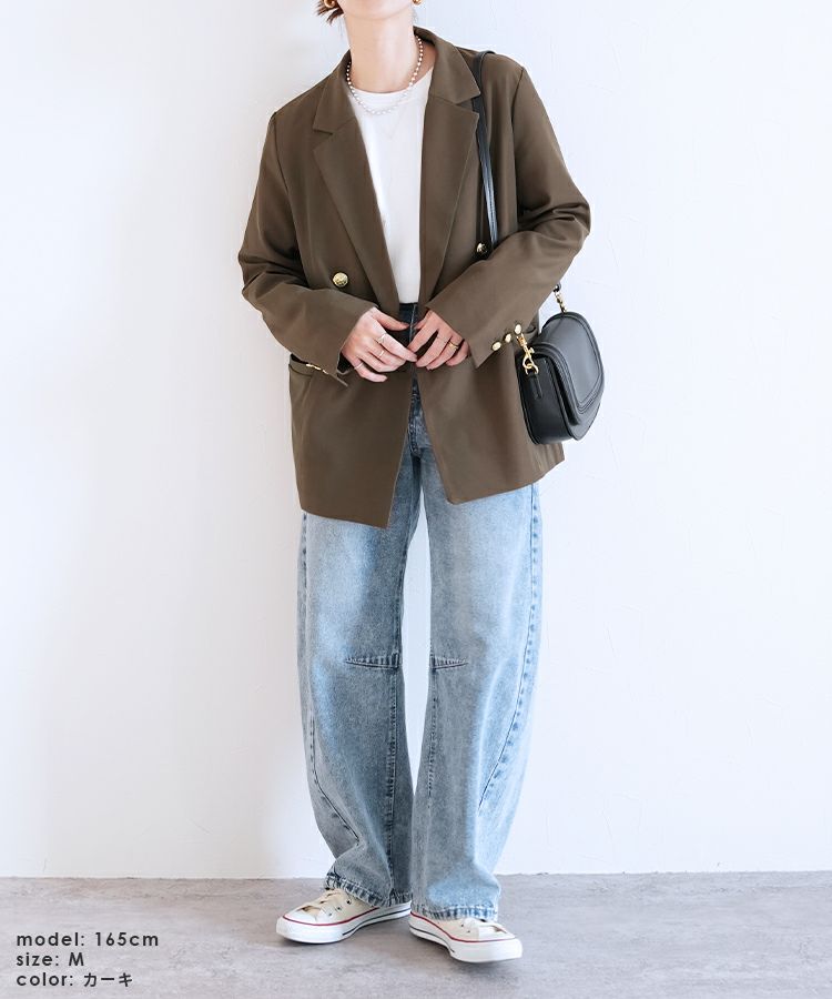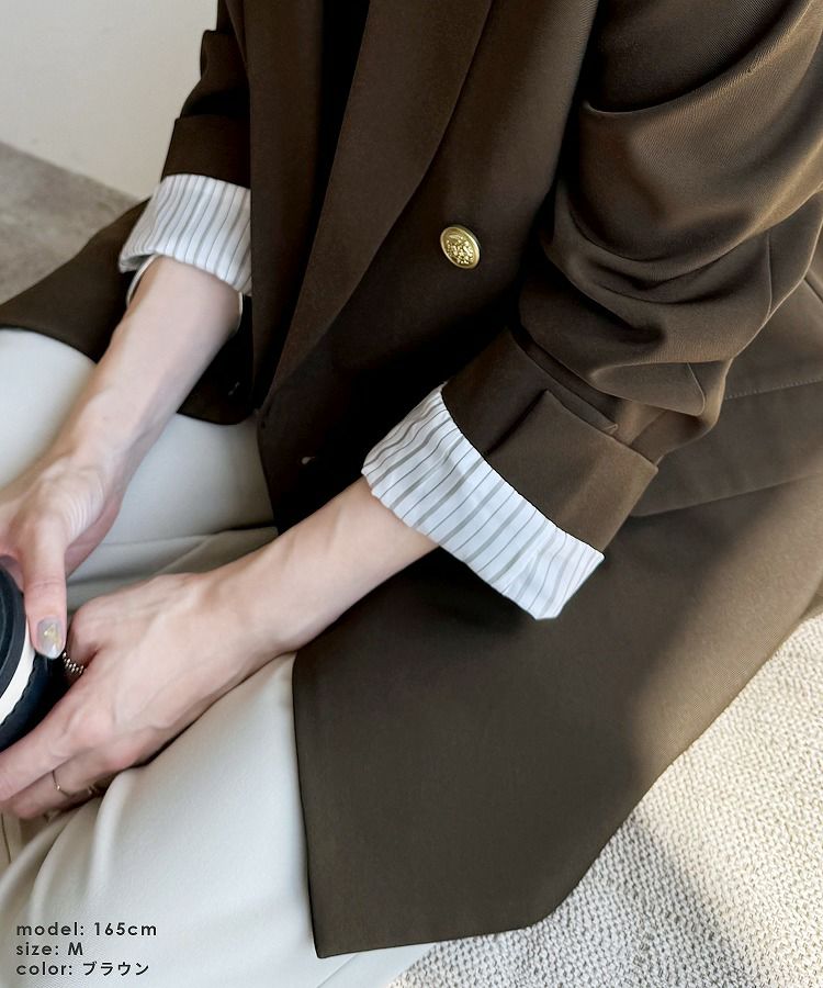 レディース アウター ダブルジャケット 長袖 ミドル ツイル 裏地付き ゆったり 大きめ ポケット ボタン 金ボタン カジュアル シンプル キレイめ オーバーサイズ 大人女子 30代ファッション 30代コーデ 40代ファッション 40代コーデ ネイビー 紺
