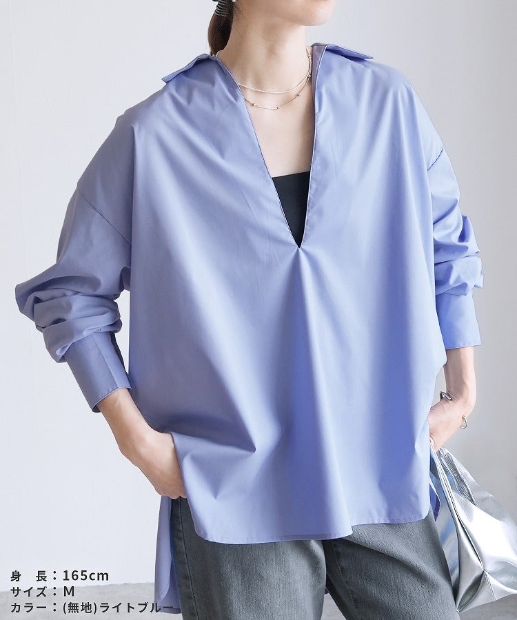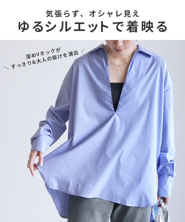 レディース トップス シャツ ブラウス シャツブラウス 透け感 ミドル丈 ロング丈 着回し 長袖 たぽん袖 ボリューム袖 Vネック スキッパー 抜き襟 ゆったり オーバーサイズ ギャザー カジュアル シンプル コットン キレカジ 春 大人女子 大人カジュアル 30代ファッション 30代コーデ 40代ファッション 40代コーデ 体型カバー お尻が隠れる ホワイト ブラック 白 黒