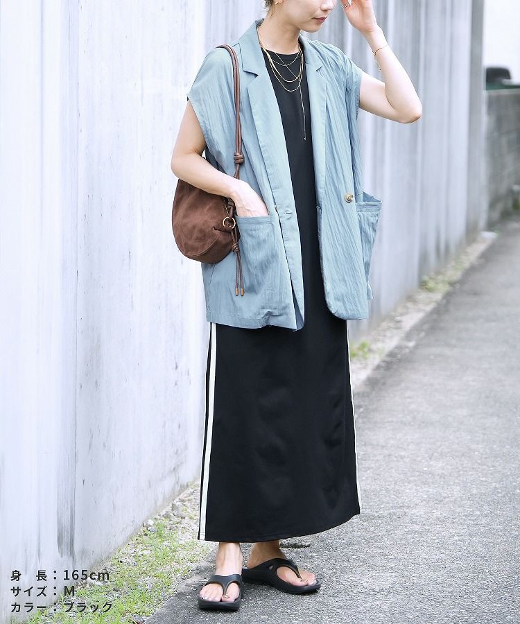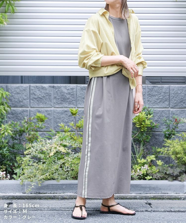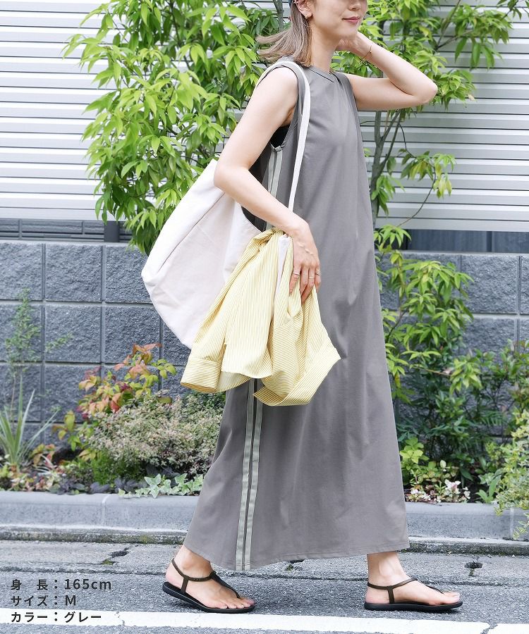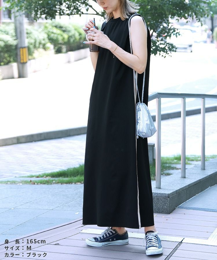 レディース 2025年夏新作 ワンピース ロング マキシ ノースリーブ サイドライン カジュアル シンプル 楽ちん 夏 大人女子 30代ファッション 30代コーデ ブラック グレー