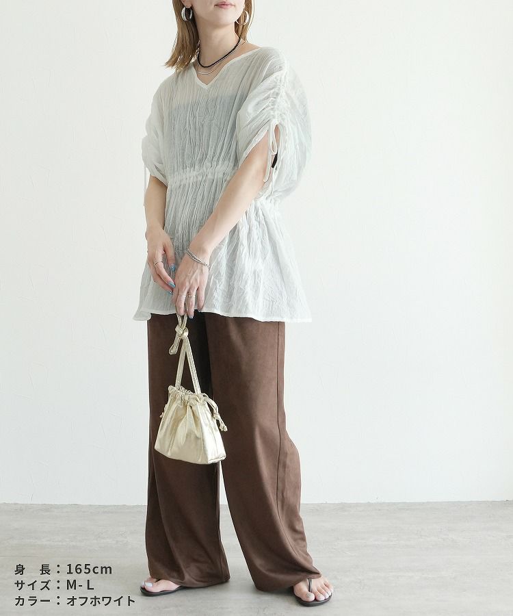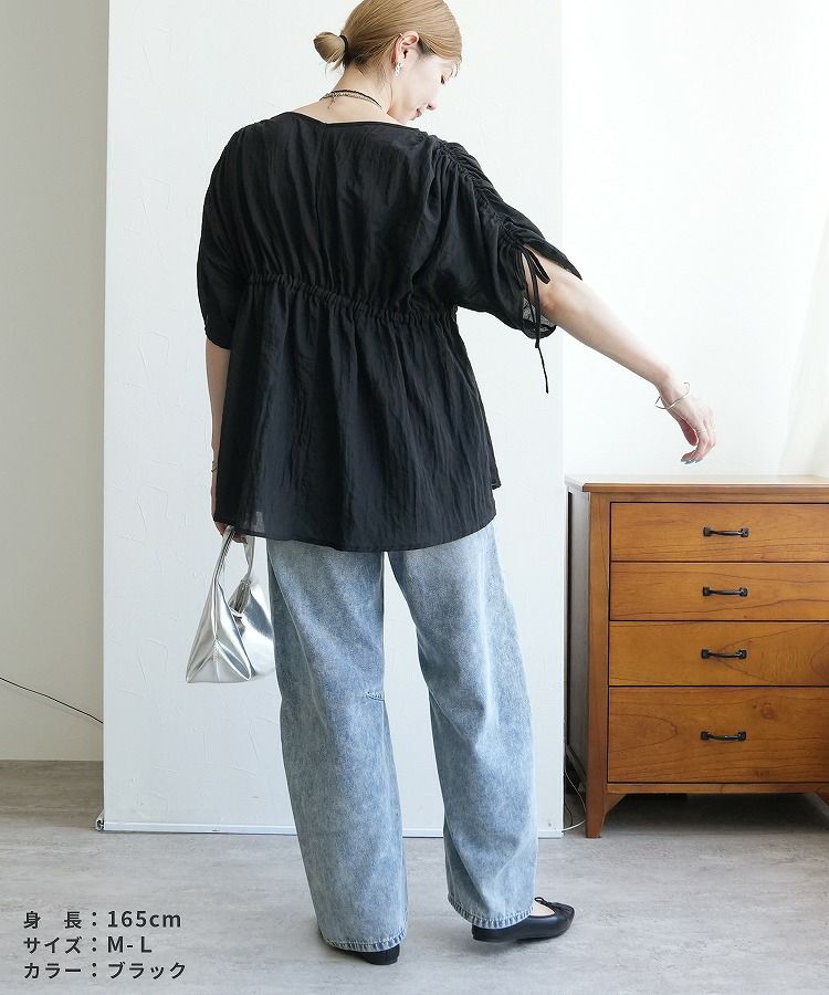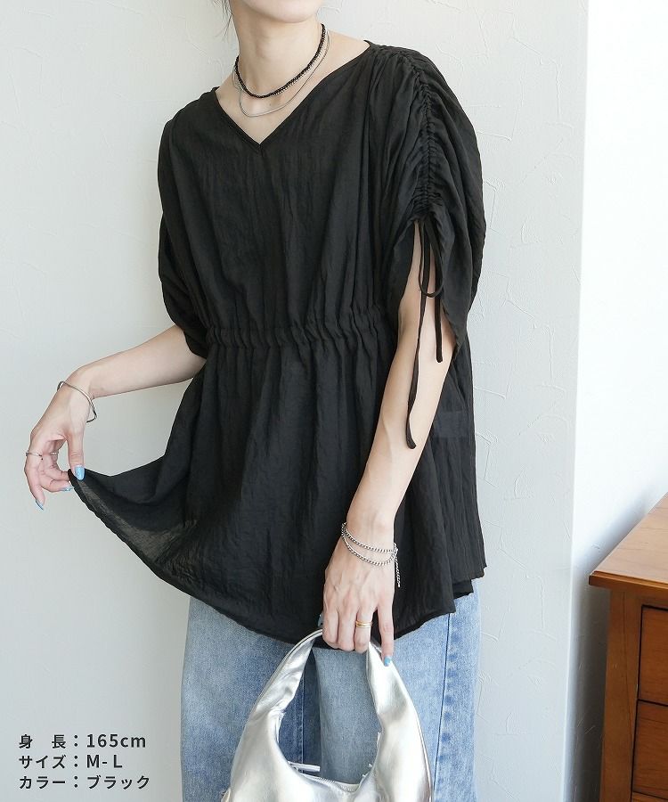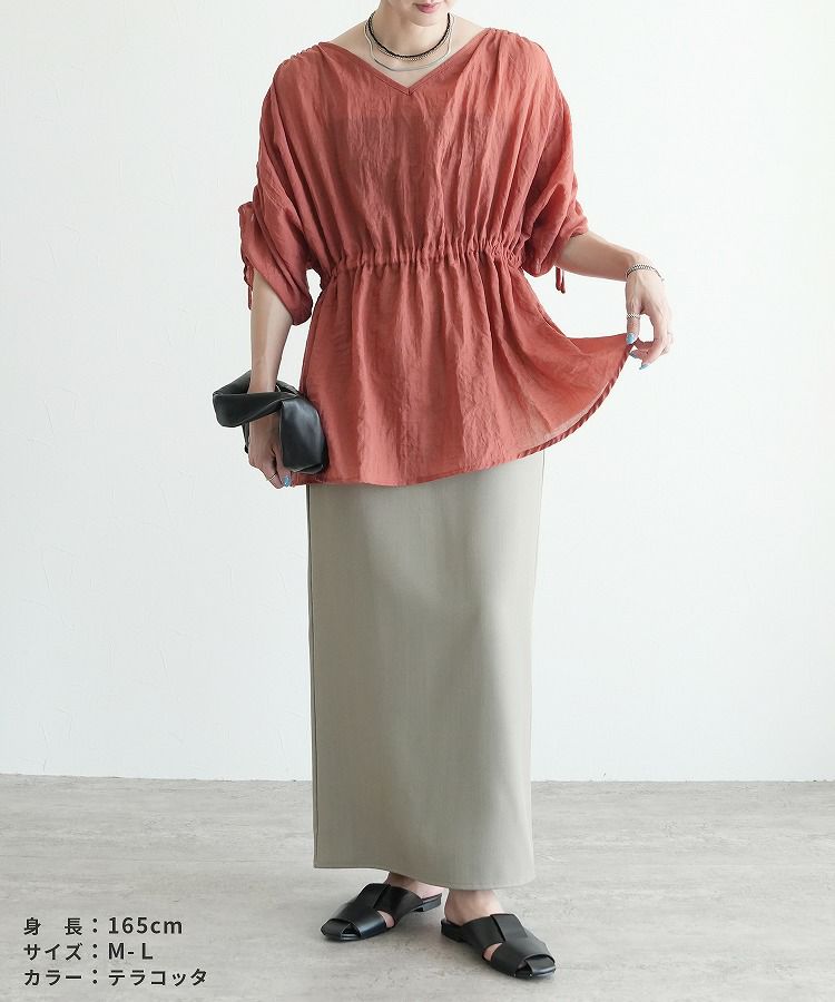 レディース トップス ブラウス Vネック シャーリング ギャザー ドルマン プルオーバー シアー 透け感 シンプル カジュアル きれいめ 長袖 半袖 ゆったり 楽ちん オシャレ 体型カバー 秋 夏 大人女子 30代ファッション 30代コーデ 40代コーデ 50代コーデ ママ 黒 ブラック 白 ホワイト テラコッタ
