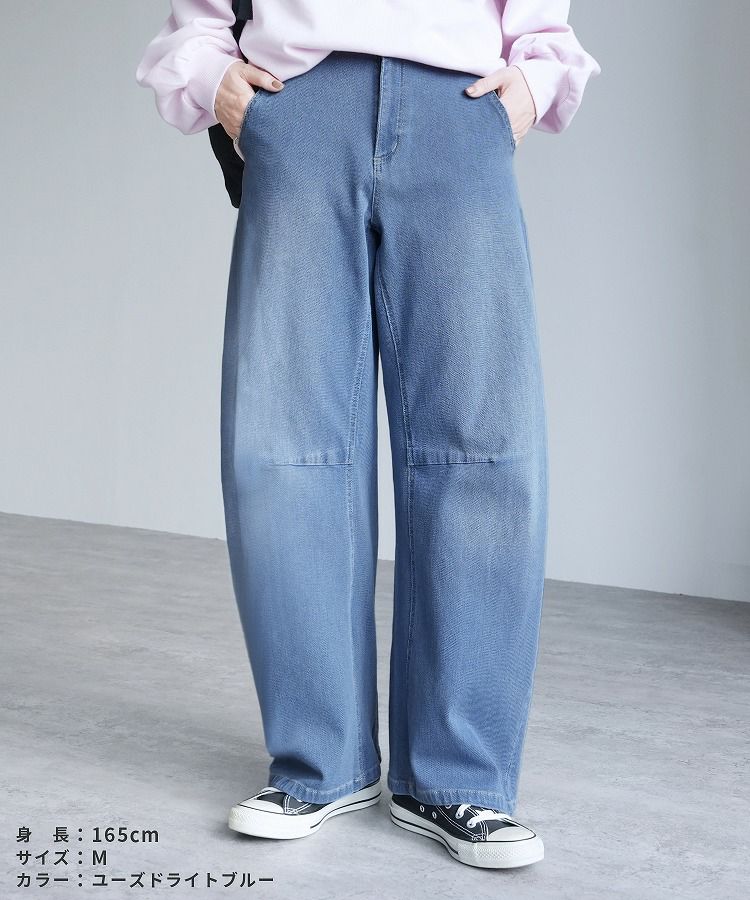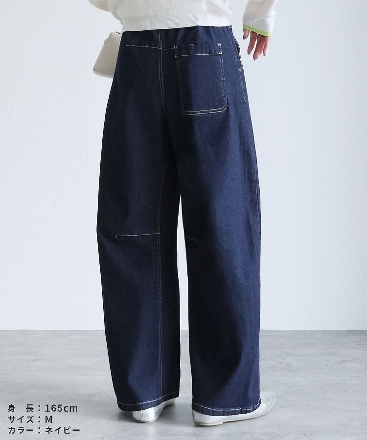 レディース ボトムス パンツ デニム デニムパンツ カーブシルエット ワイドパンツ ワイドデニム ストレッチパンツ 薄色デニム ジーンズ ジーパン ウエストゴム バッグゴム 柔らかい ストレッチ 伸縮性 薄手 ポケット シンプル カジュアル 大人女子 30代ファッション 30代コーデ コットン 綿 ブルー ネイビー 紺色 グレー オールシーズン M L LL 大きいサイズ ゆったり 楽ちん 履きやすい 伸びる 通気性