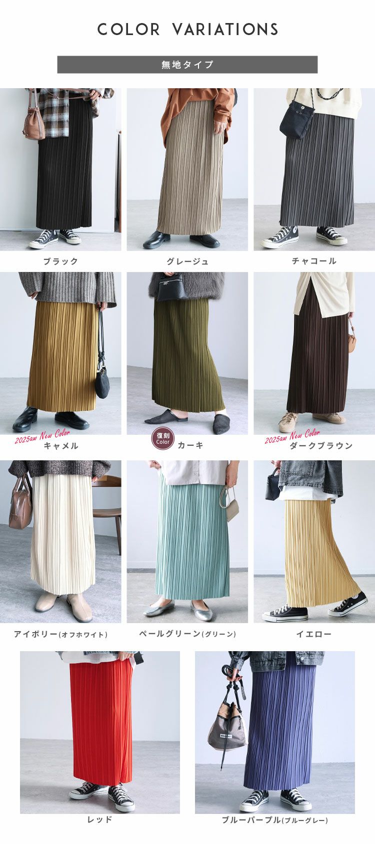 下半身カバー  レディース ボトムス スカート プリーツスカート プリーツ ロング ロング丈 ロングスカート ウエストゴム 楽ちん ギャザースカート 無地 プリーツ ランダムプリーツ リラックススカート キレイめ カジュアル 高見え 華やか 秋 大人女子 30代ファッション 30代コーデ 40代ファッション 40代コーデ ママコーデ トレンドコーデ くすみカラー ライトグリーン グレージュ イエロー 黄 ブラック 黒 春 夏 スプリング