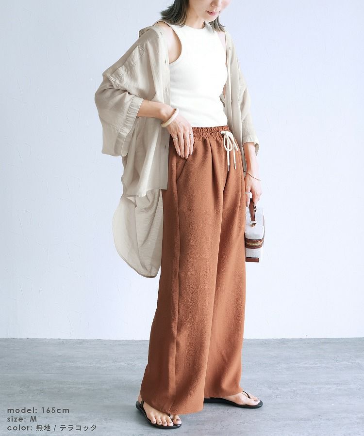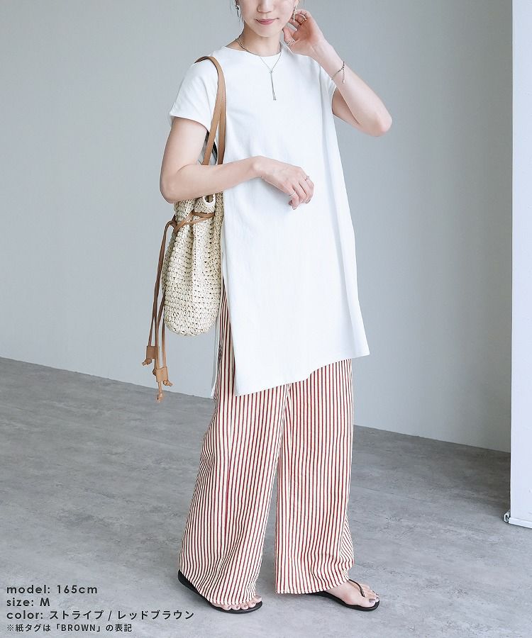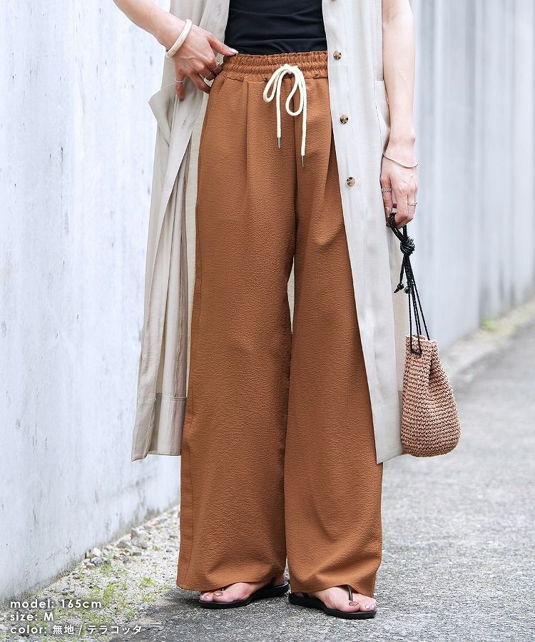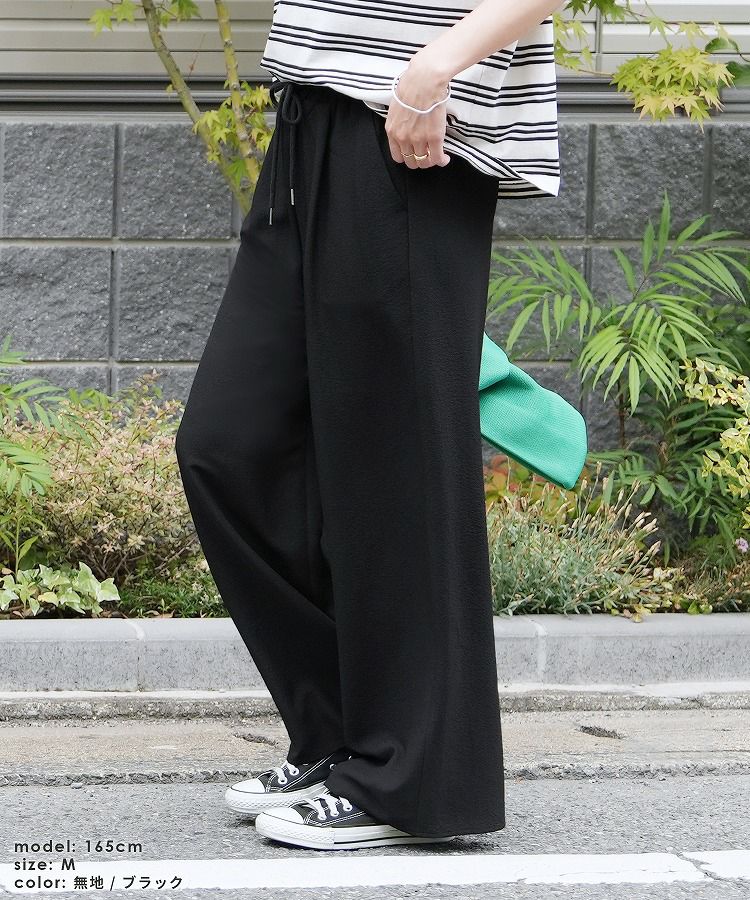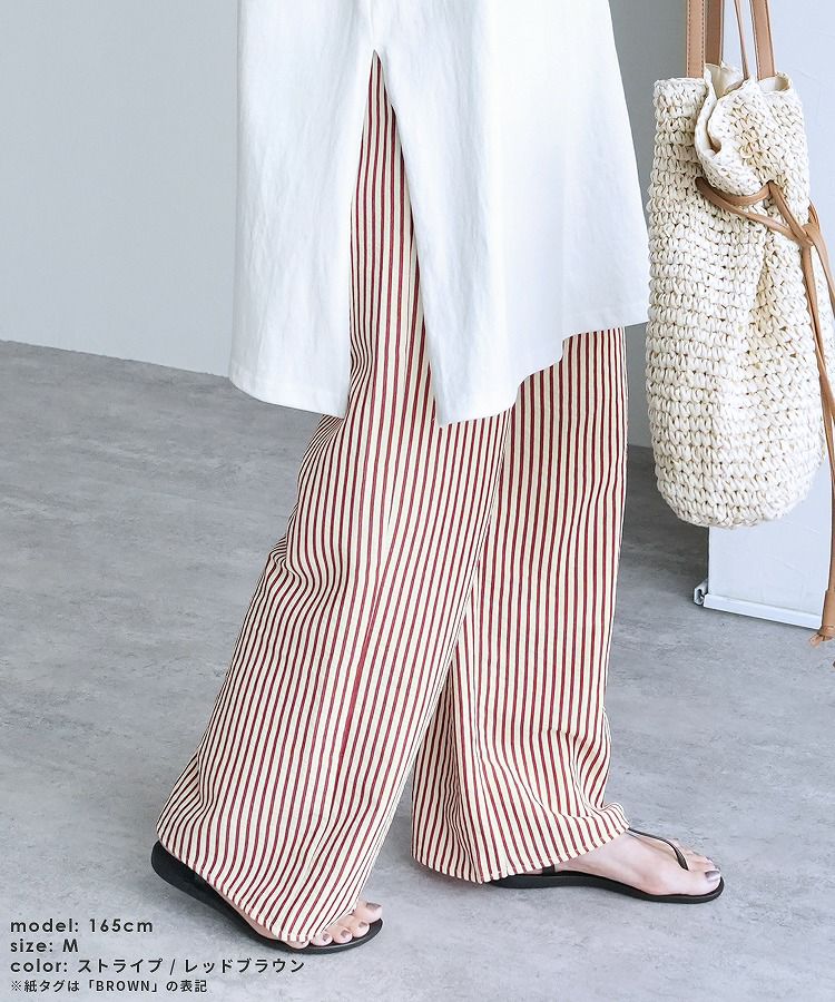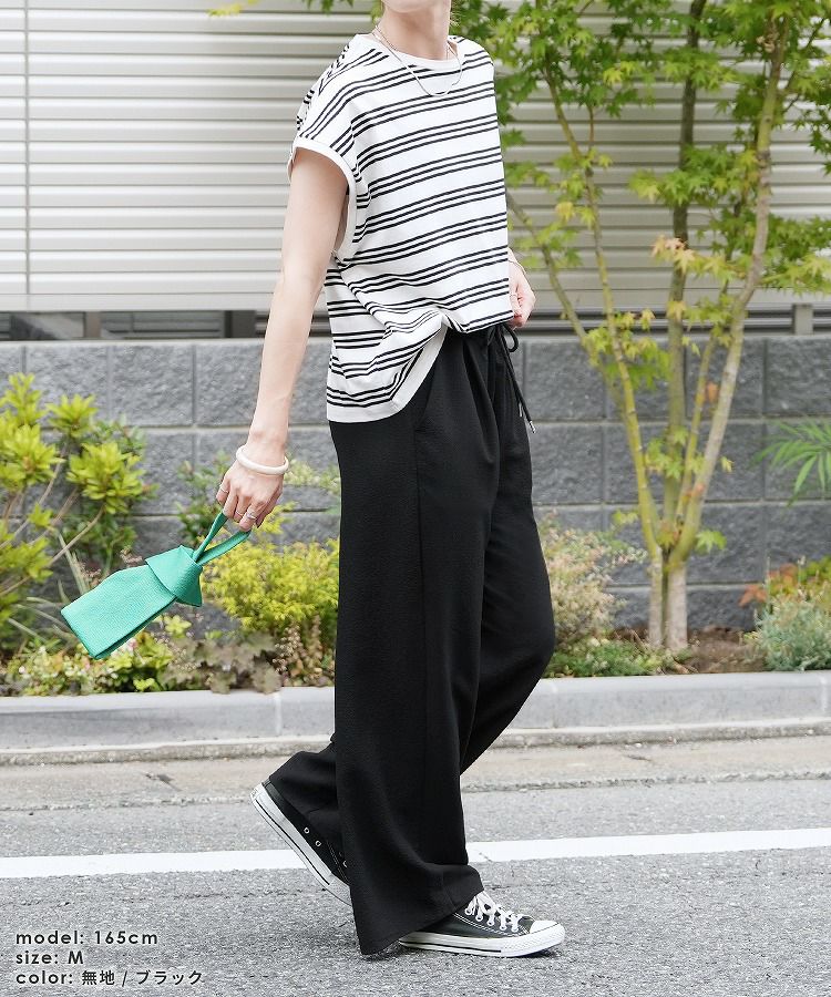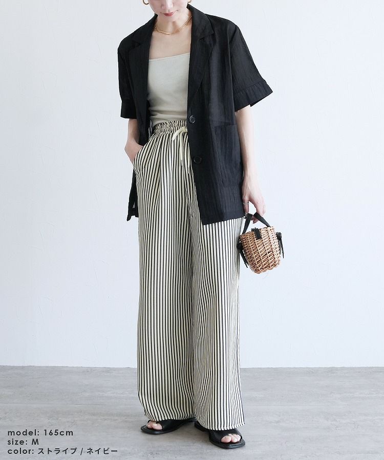 レディース 2025年夏新作 ボトムス パンツ イージー ワイドパンツ ウエストゴム ハイウエスト ポケット カジュアル シンプル 楽ちん 夏 大人女子 30代ファッション 30代コーデ 無地 柄 ストライプ グリーン 緑 ブルー 青 テラコッタ ブラック 黒 ネイビー ストライプブルー ストライプネイビー