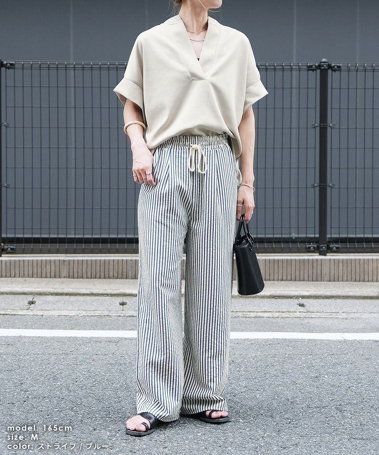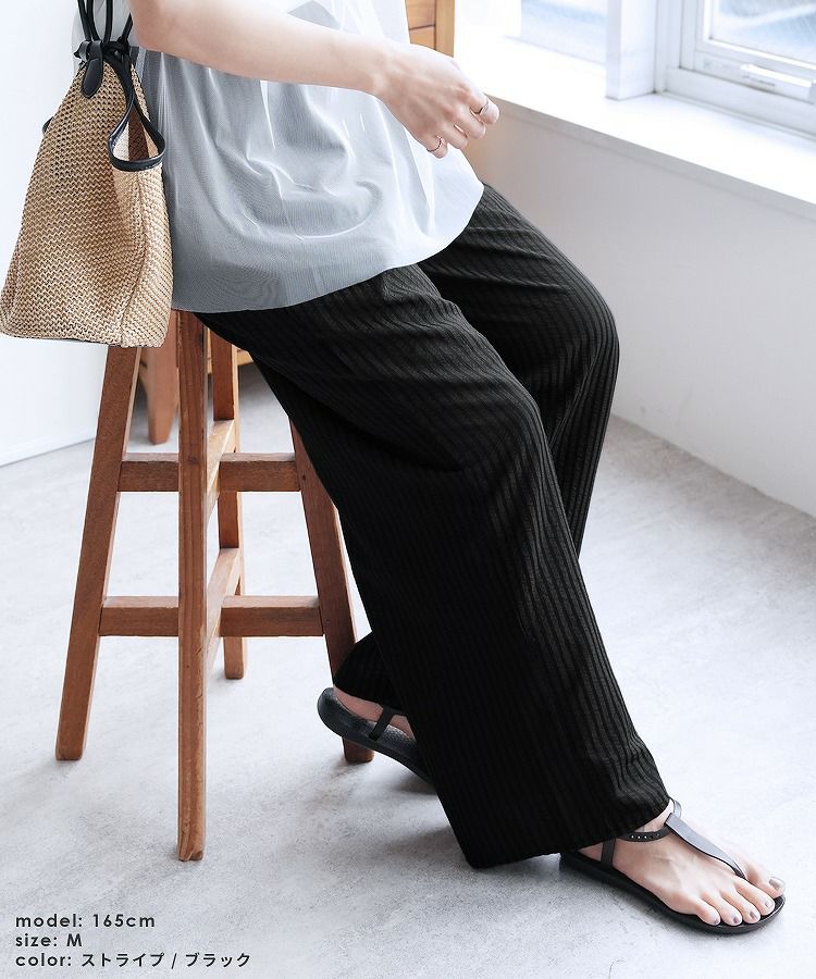 無地/ストライプエンボス加工イージーパンツ(y2819・y2818) ネコポス発送10