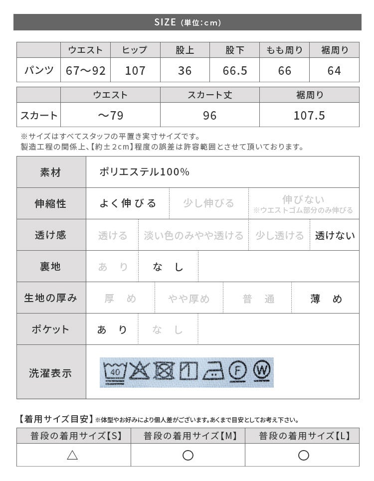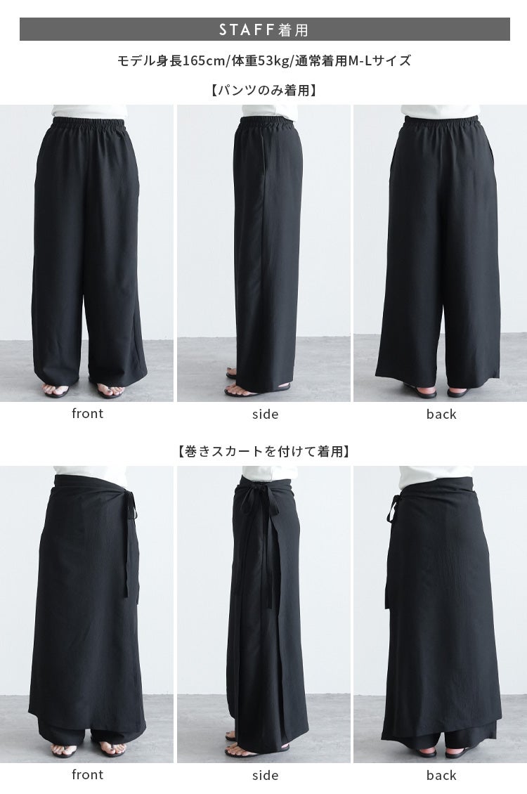 エンボス加工巻きスカート付きワイドパンツ(y2916) ネコポス発送10