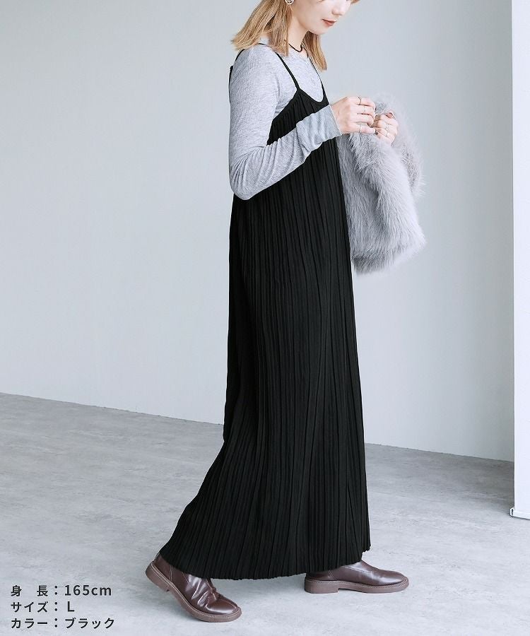 レディース ワンピース ワンピ プリーツワンピ プリーツワンピース ランダムプリーツ プリーツ プルオーバー 立体感 縦長 Iライン スタイルアップ キャミ キャミワンピ キャミワンピ―ス きれいめ カジュアル キレカジ シンプル 大人女子 30代ファッション 30代コーデ 無地 柄 ゼブラ グレージュ グレーベージュ ブラック 黒