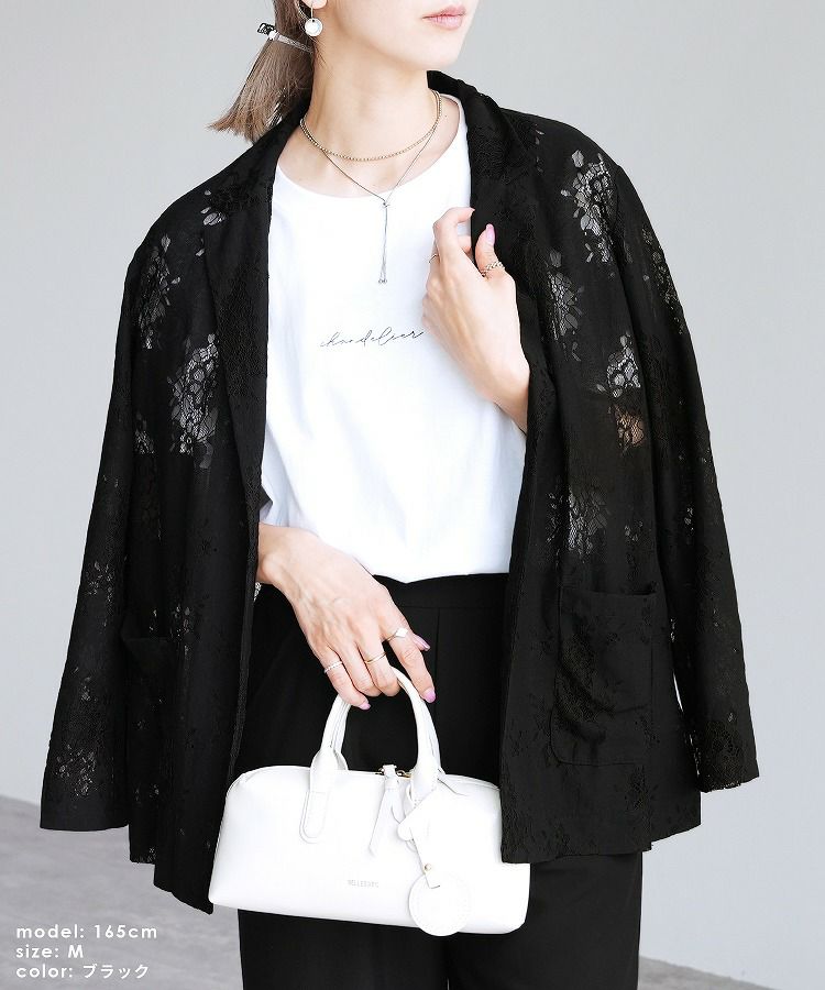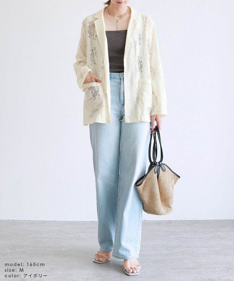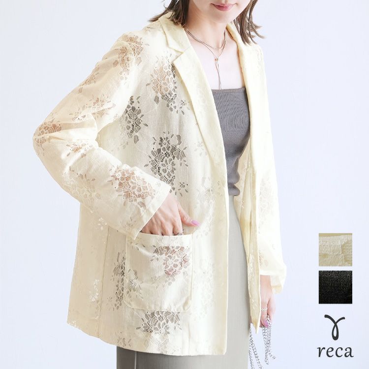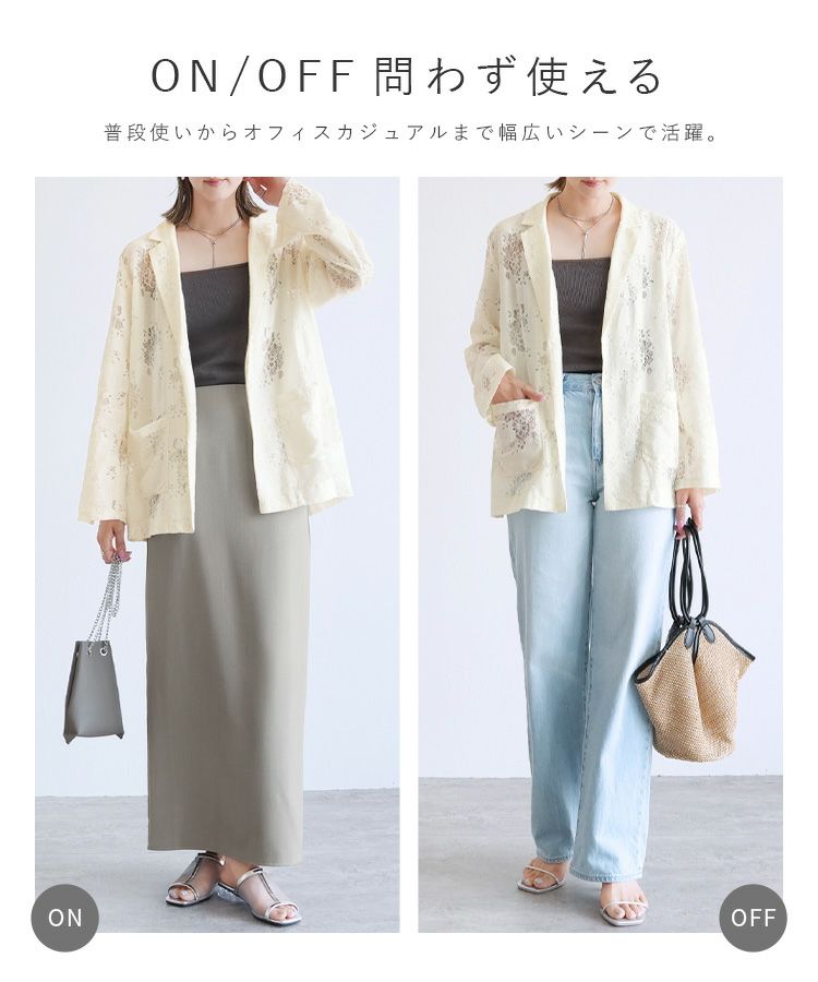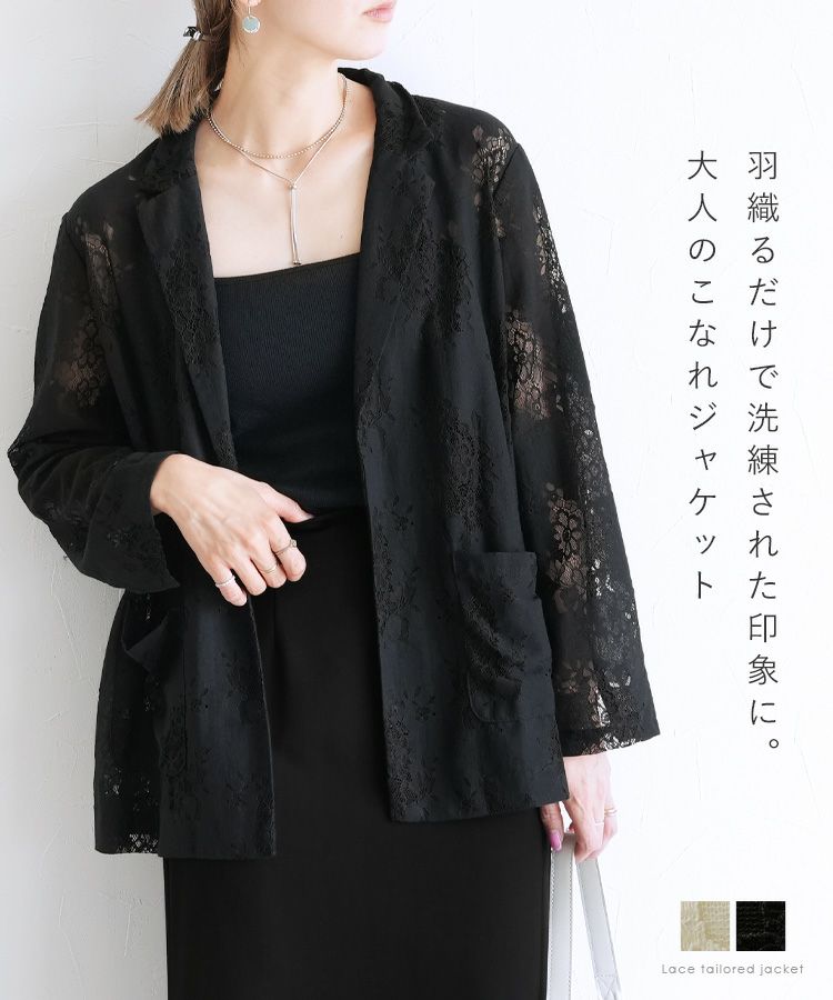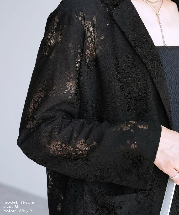 レディース アウター ジャケット テーラード テーラードジャケット シアー 透け感 レース 総レース 前開き 羽織 袖口スリット レイヤード 体型カバー こなれ感 抜け感 抜け 長袖 ポケット付き ポケット きれいめ カジュアル キレカジ オフィス 通勤服 シンプル オケージョン きちんとコーデ ママコーデ 大人女子 30代ファッション 30代コーデ アイボリー ホワイト 白 ブラック 黒