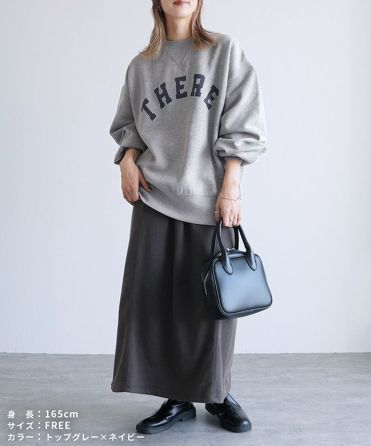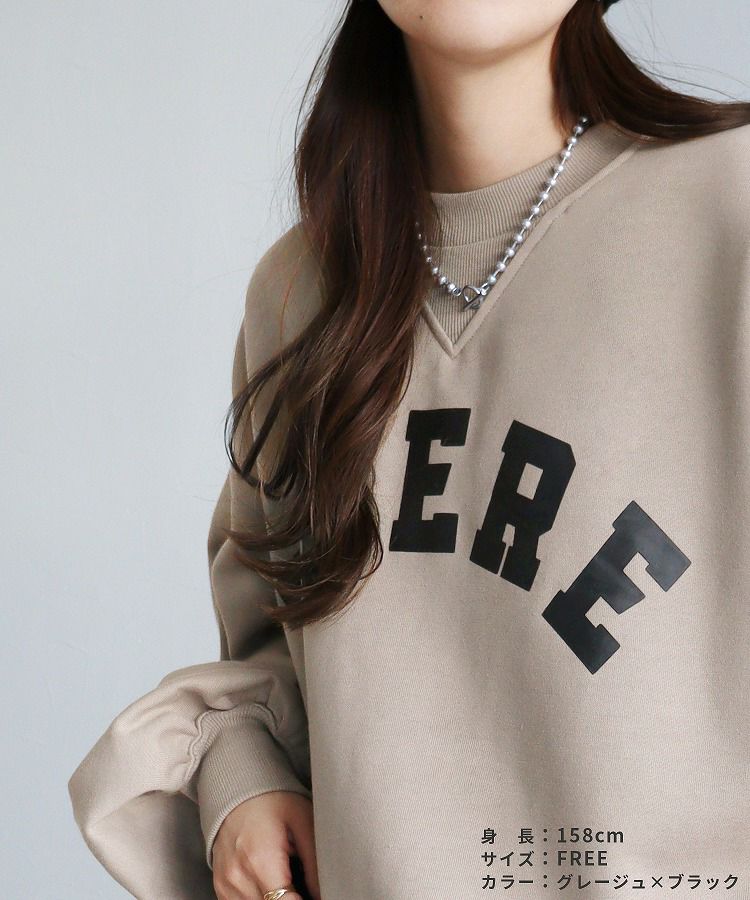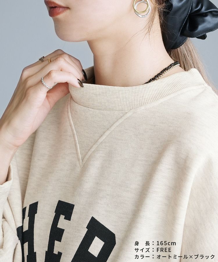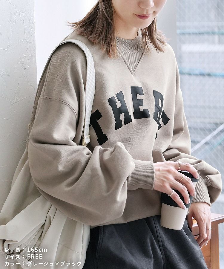 レディース トップス スウェット トレーナー プルオーバー ロゴプリント ロゴ ロゴスウェット ビッグロゴ 体型カバー ゆったり ルーズ たぽん袖 長袖 クルーネック 丸首 カジュアル シンプル 裏起毛 大人女子 30代ファッション 30代コーデ プリント オートミール ホワイト 白 ブラック 黒 チャコール グレー グレージュ モカ