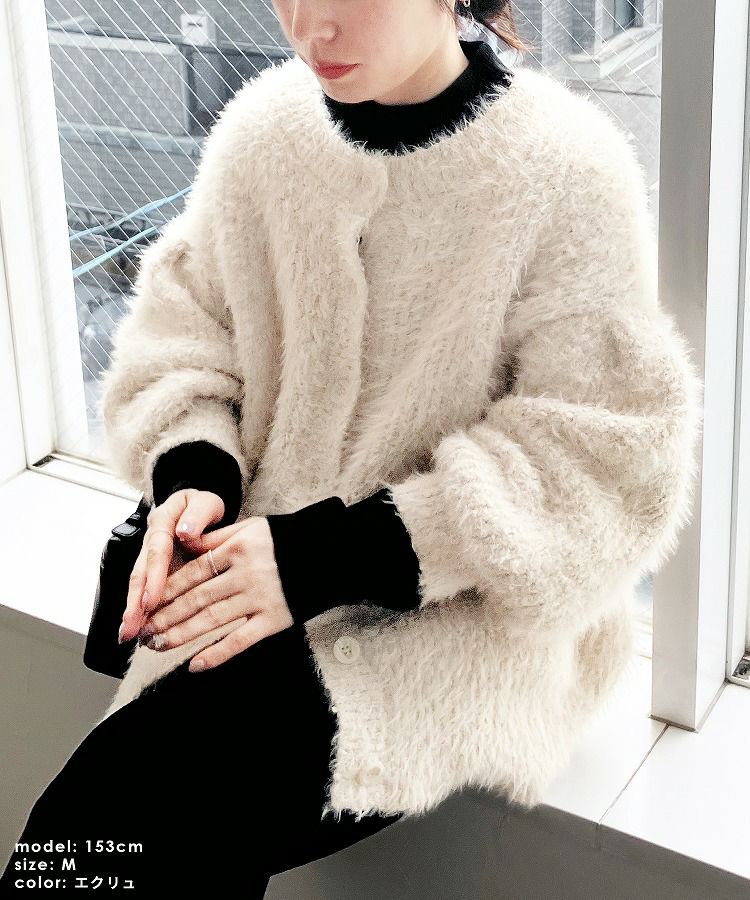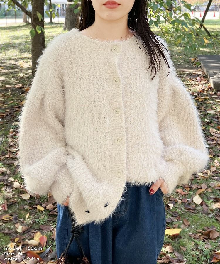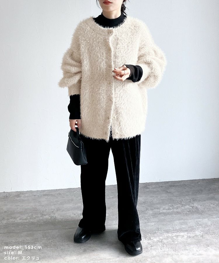 シャギーUネックカーディガン(bel-eb-167) 宅配便発送