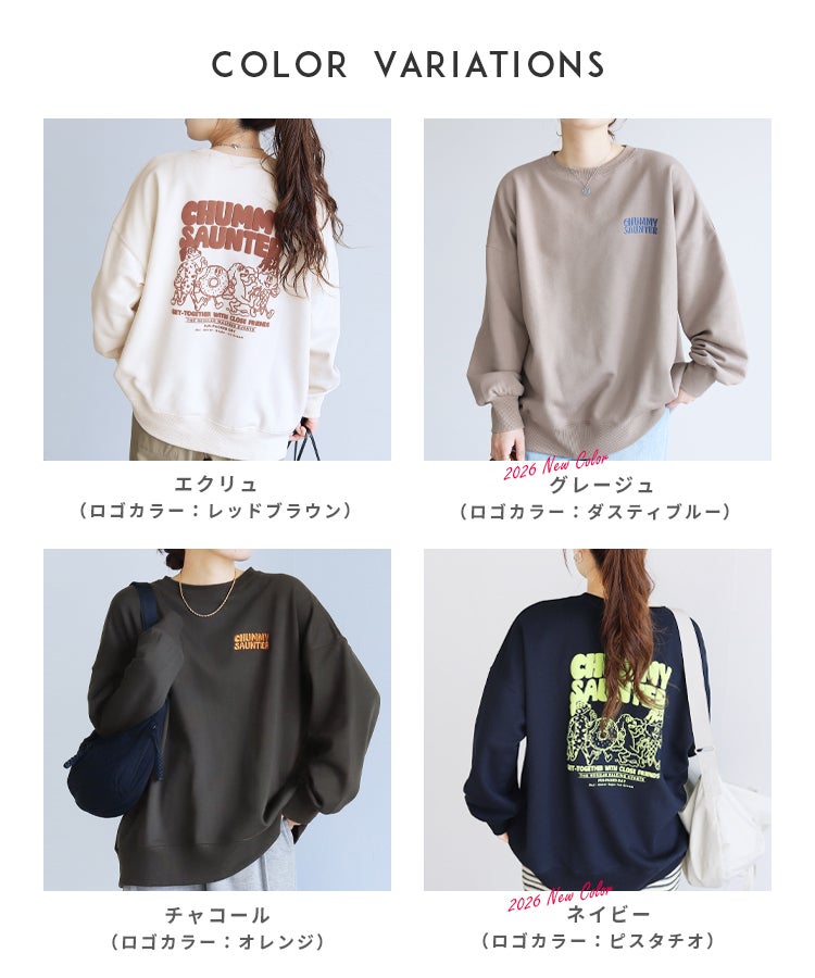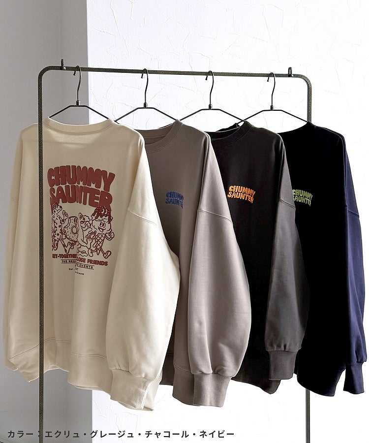 レディース トップス スウェット トレーナー プルオーバー オーバーサイズ メンズライク ロゴ ロゴ刺繍 ロゴスウェット ロゴT 発泡プリント キャラクター 前後ロゴ ワンポイント 長袖 クルーネック 丸首 カジュアル シンプル 大人女子 30代ファッション 30代コーデ プリント 配色 バイカラー オートミール エクリュ ホワイト 白 チャコール グレー ブルー オレンジ レッド ライトイエロー グリーン