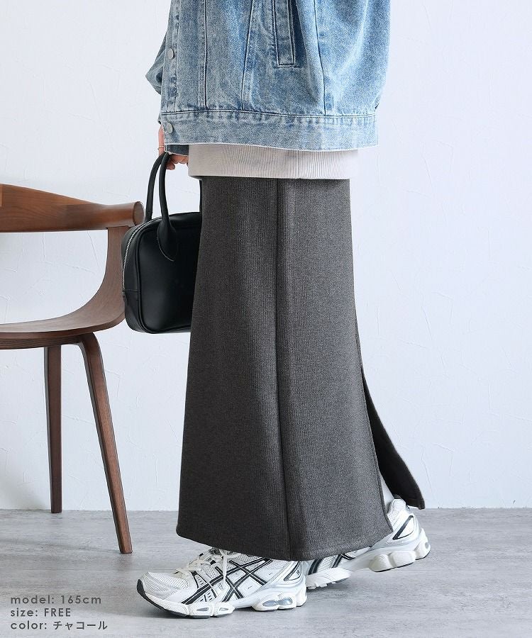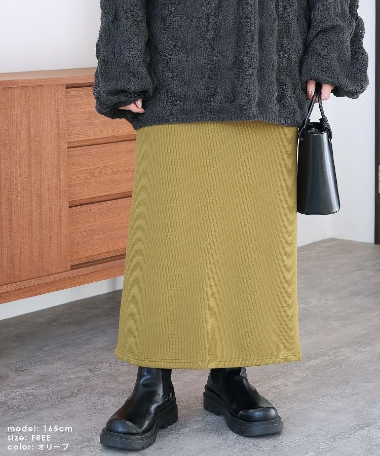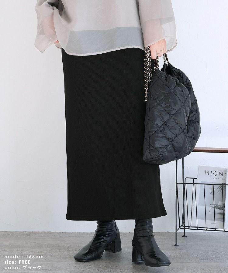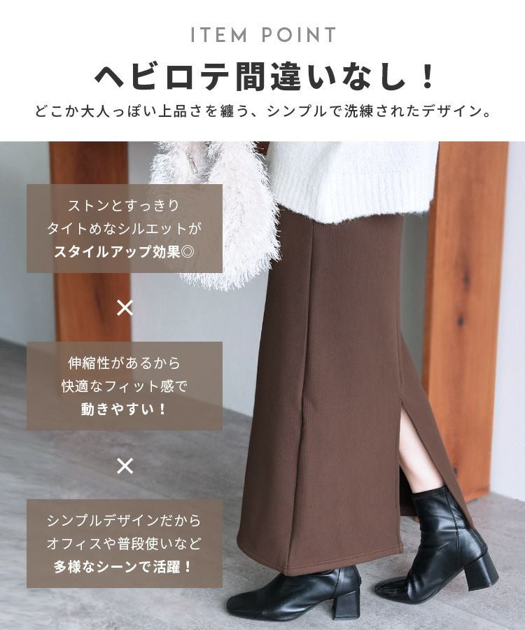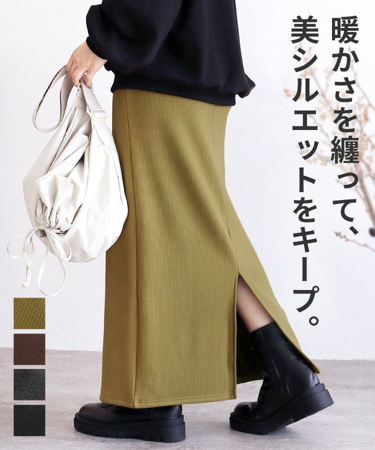 レディース ボトムス スカート タイトスカート ロング丈 マキシ丈 リブ 伸縮性 ストレッチ 楽ちん カジュアル キレイめ シンプル 秋 冬 ウエストゴム 裏起毛 暖かい 防寒 美脚 脚長効果 ママコーデ 30代コーデ 30代ファッション 大人コーデ オシャレ ブラック 黒 ブラウン オリーブ ニュアンスカラー