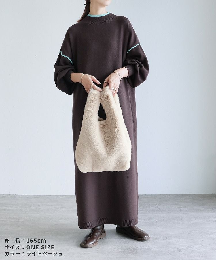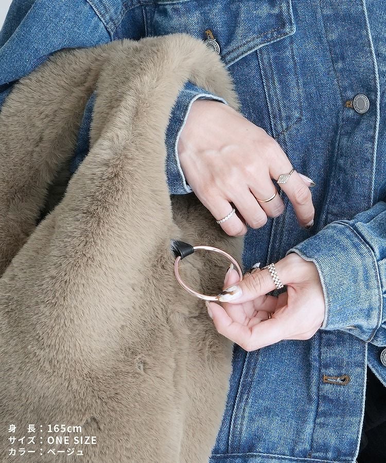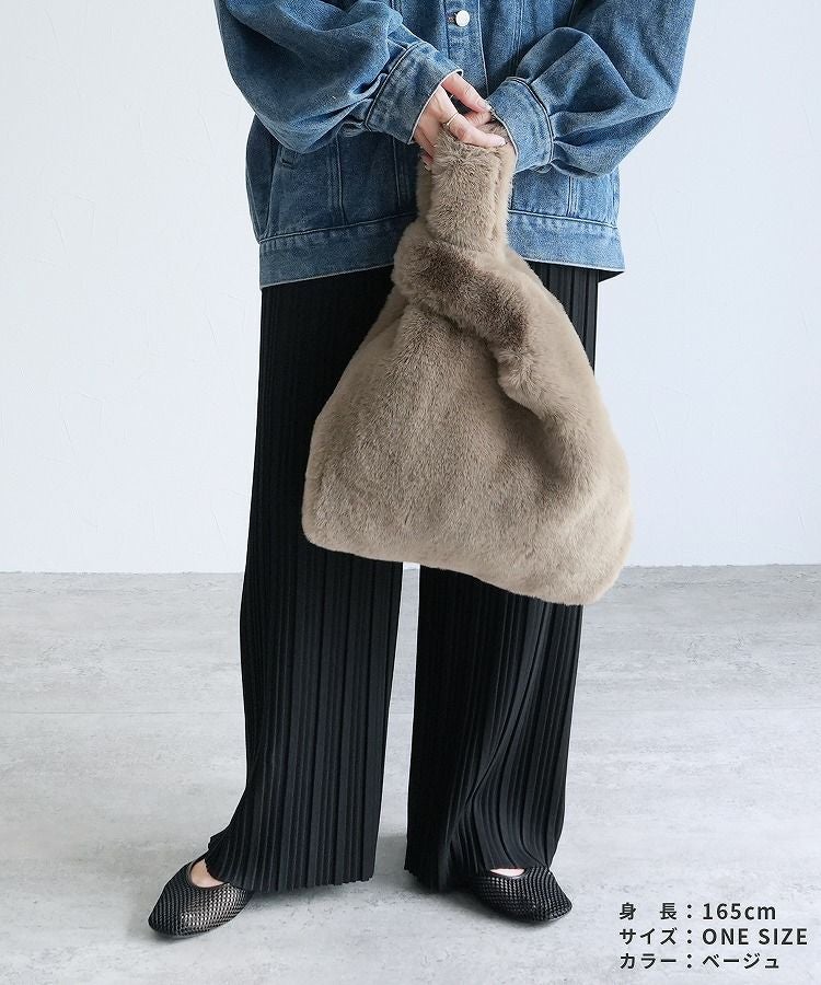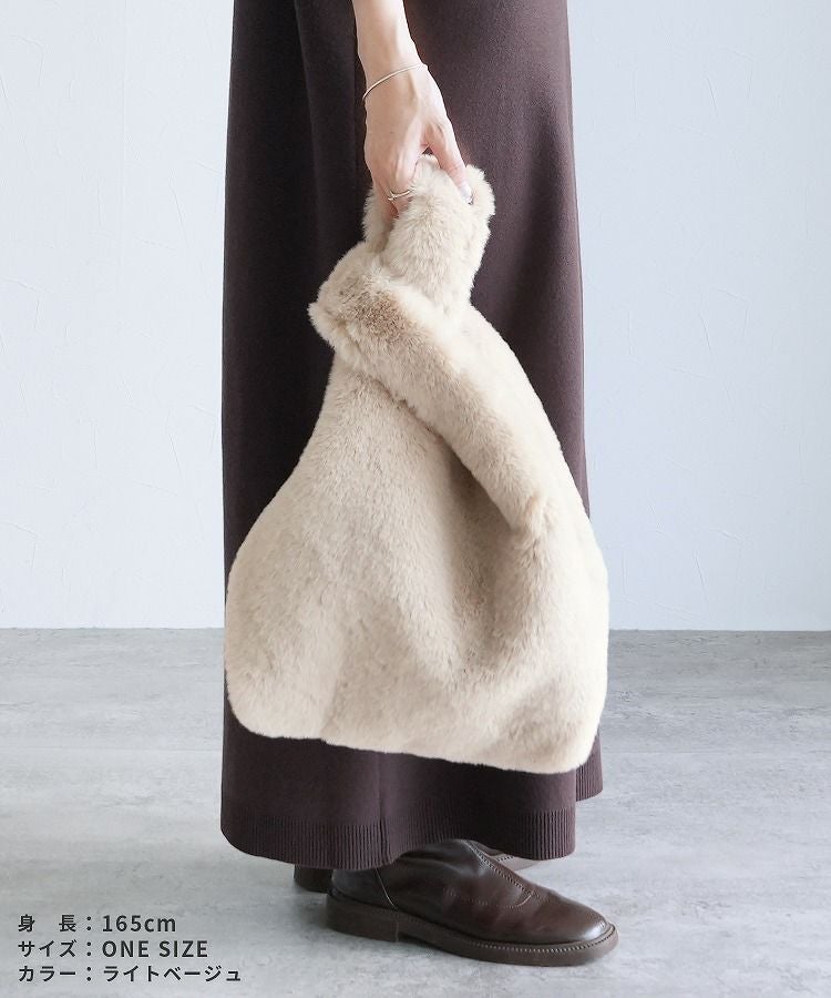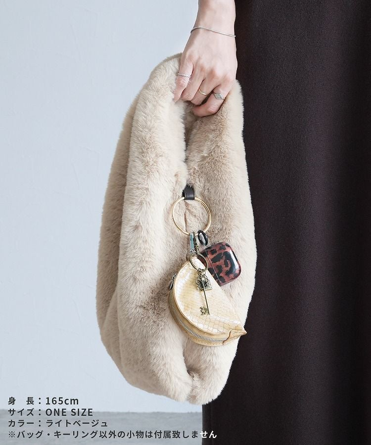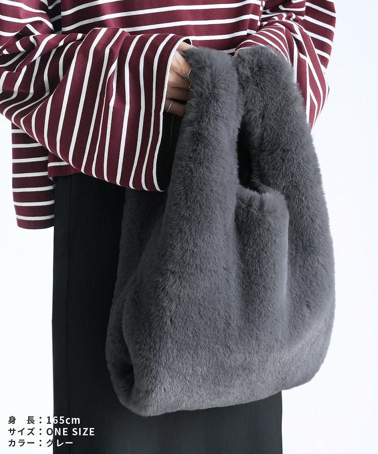 バッグ レディース レディースバッグ トートバッグ ハンドバッグ ファーバッグ 手さげバッグ 鞄 かばん ワンハンドル ファー フェイクファー キーリング カラビナ ふわふわ もこもこ 大人 柔らかい おしゃれ カジュアル おでかけ 無地 シンプル 大人女子 30代ファッション 30代コーデ グレー ベージュ