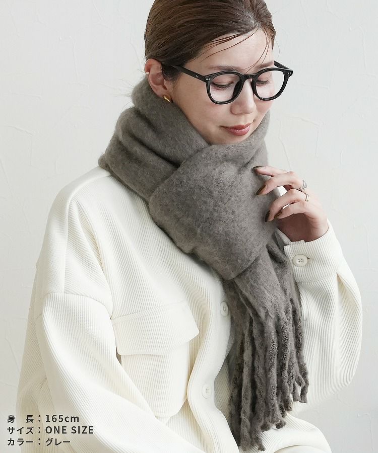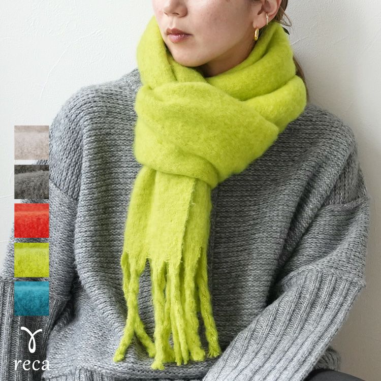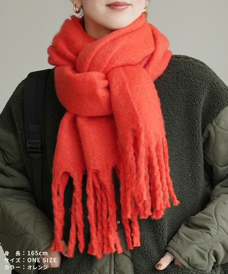 レディース シンプル カジュアル ナチュラル 抜け感 差し色 大判 マフラー ストール ひざ掛け 羽織 防寒 楽ちん オシャレ 秋 冬 大人女子 30代ファッション 30代コーデ 40代コーデ 50代コーデ ママ オシャレ ファッション小物 グレー オレンジ 赤 イエロー ライム ブルー アイボリー 白