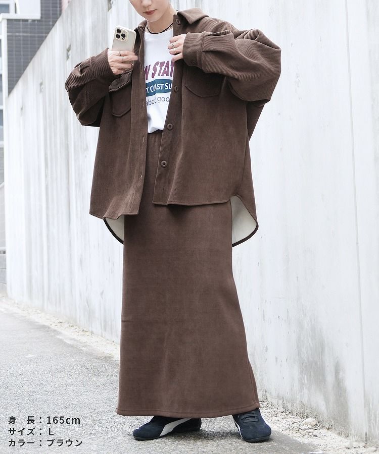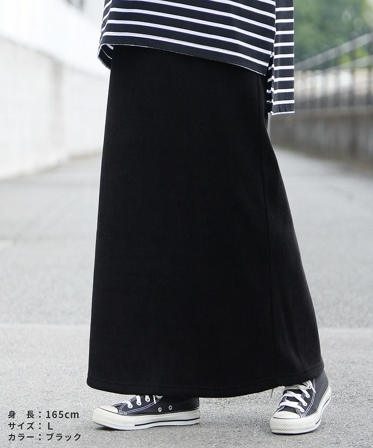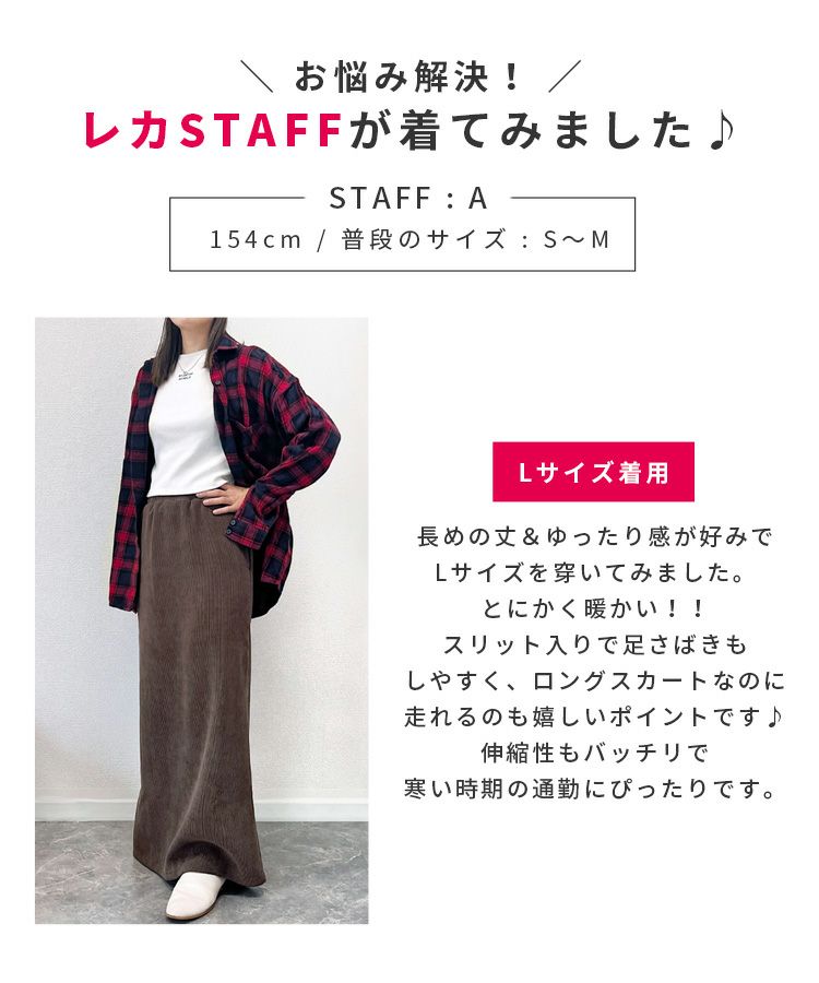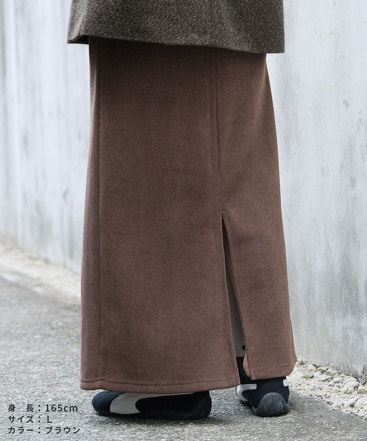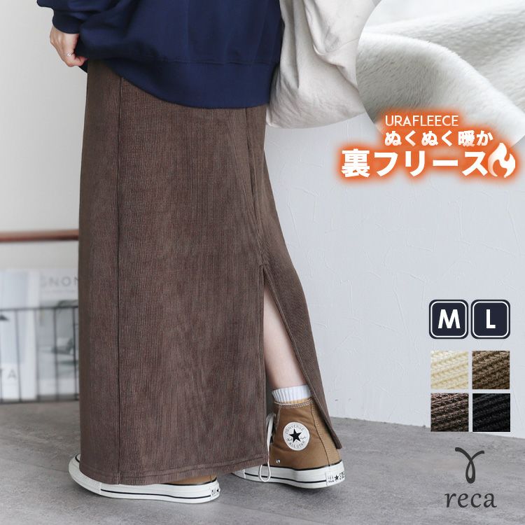 レディース ボトムス スカート タイトスカート ナロースカート ロングスカート 裏フリース 裏起毛 ウエストゴム ポケット ボンディング カジュアル シンプル 楽ちん コーデュロイ 暖かい あったか あたたかい 防寒 秋 冬 大人女子 30代ファッション 30代コーデ モカ ブラウン ブラック 黒