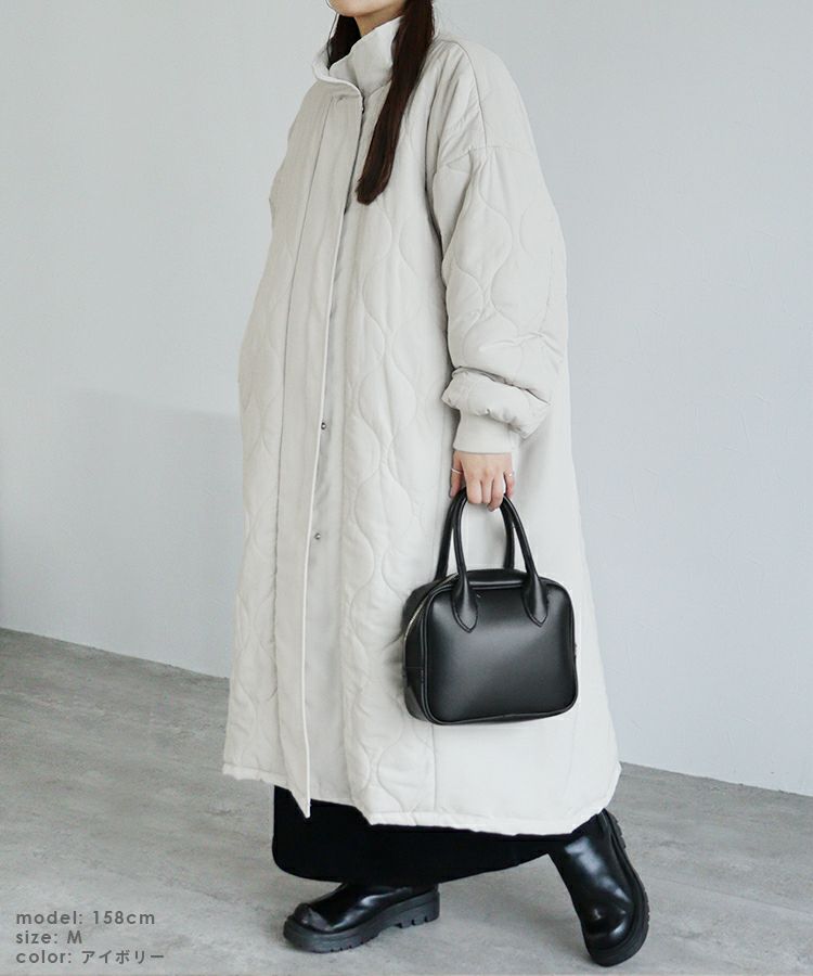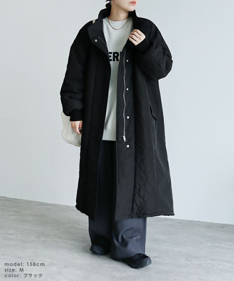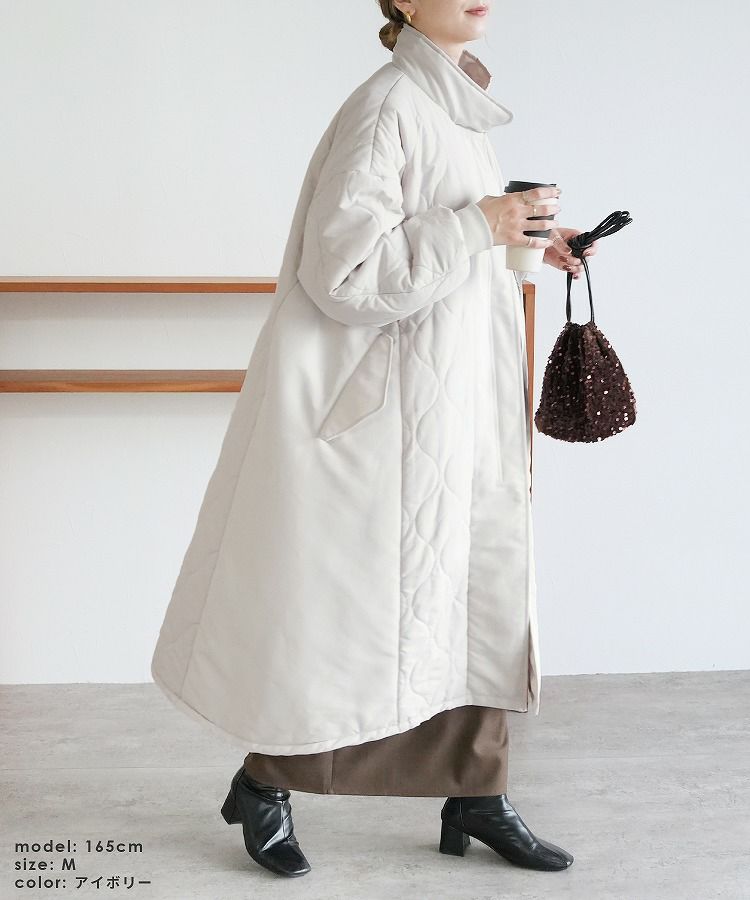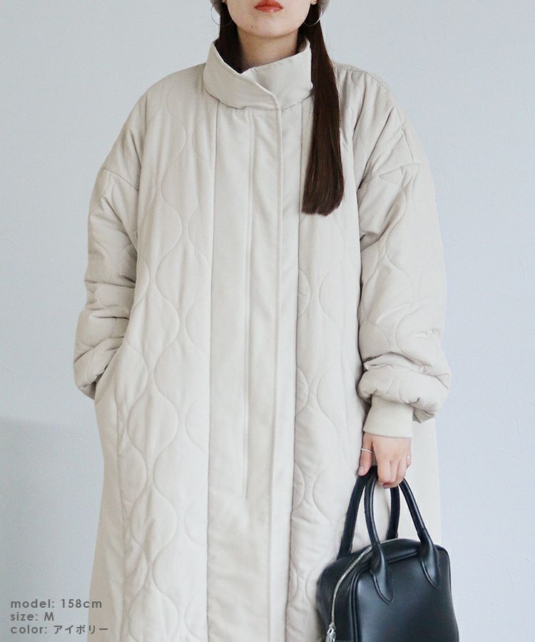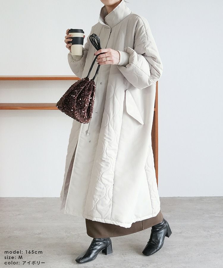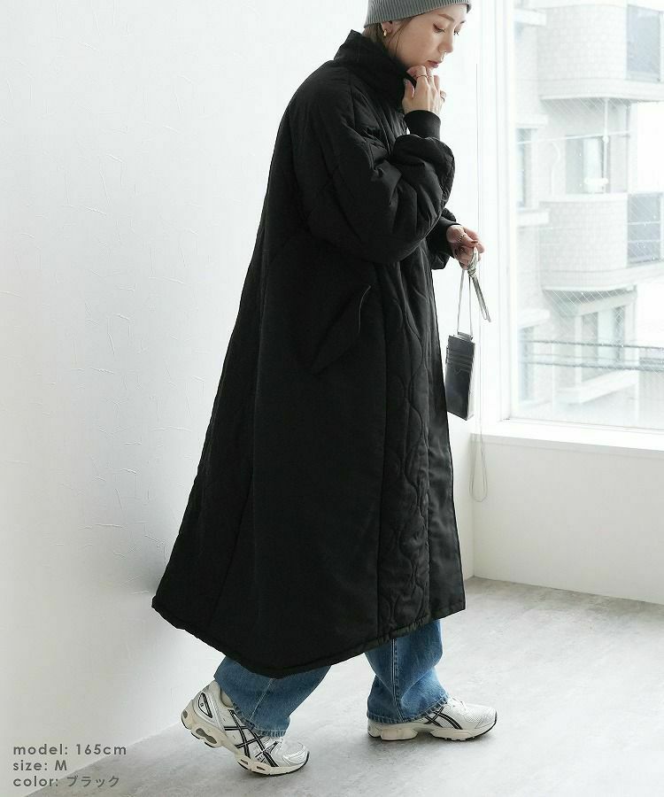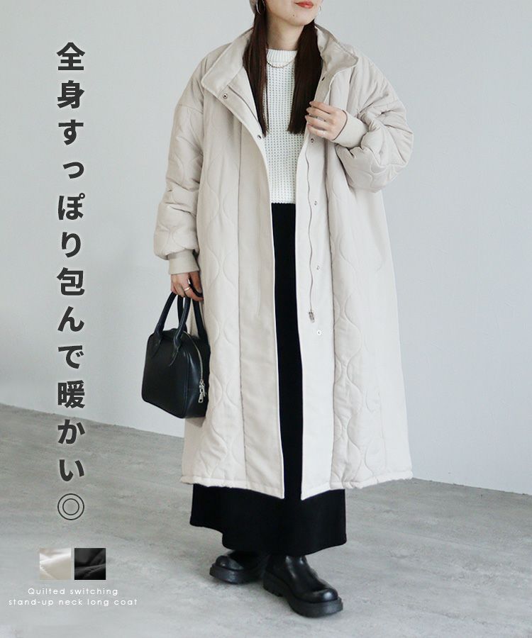 キルト切替スタンドネックロングコート(y8128) 宅配便発送