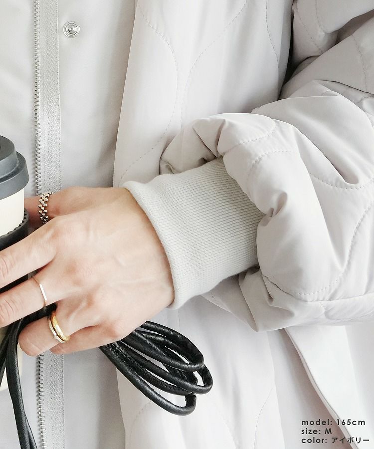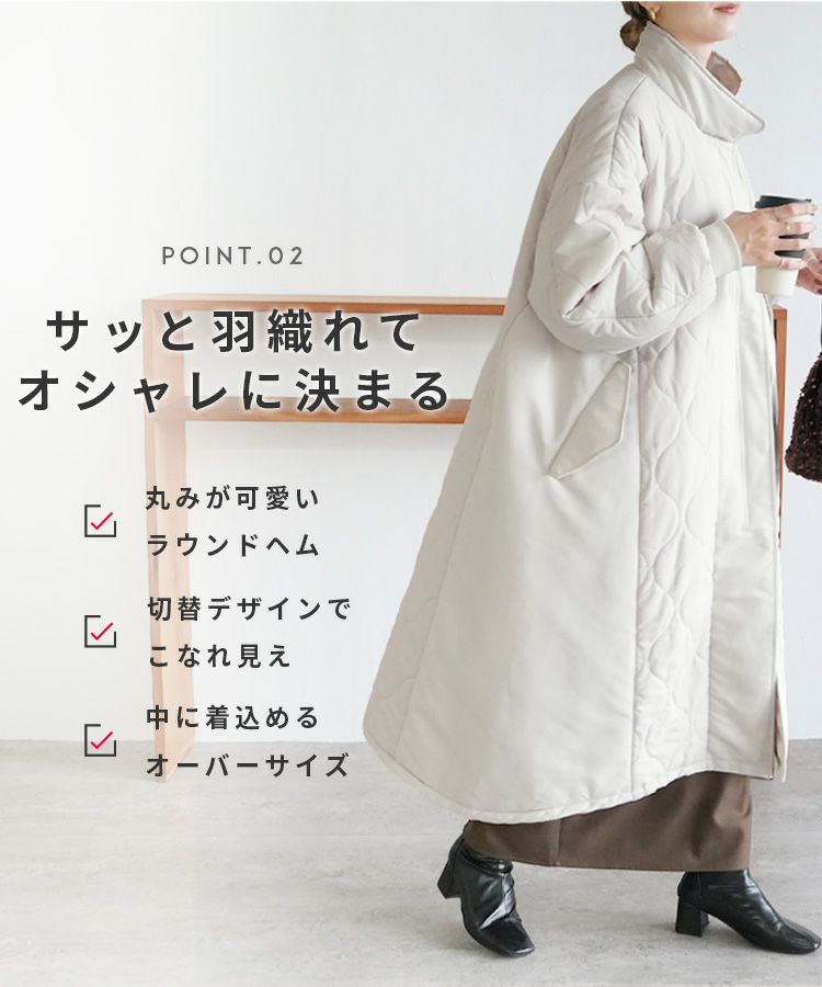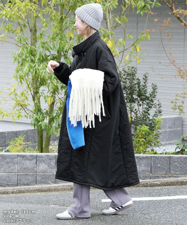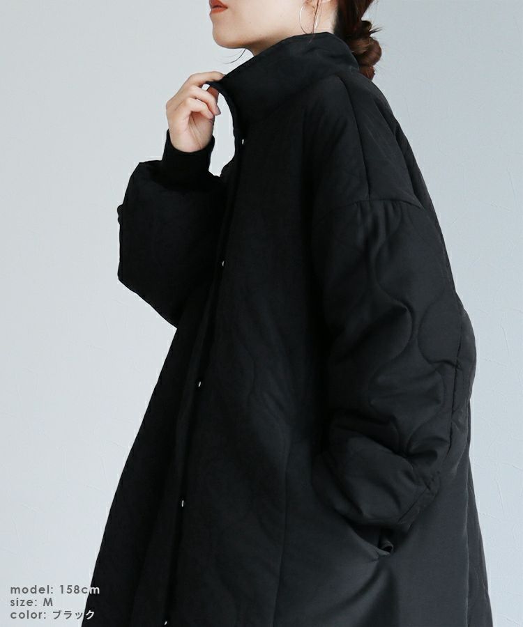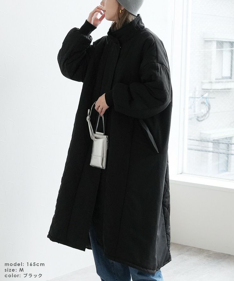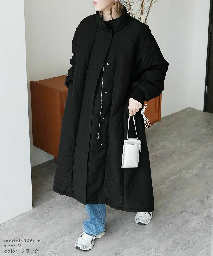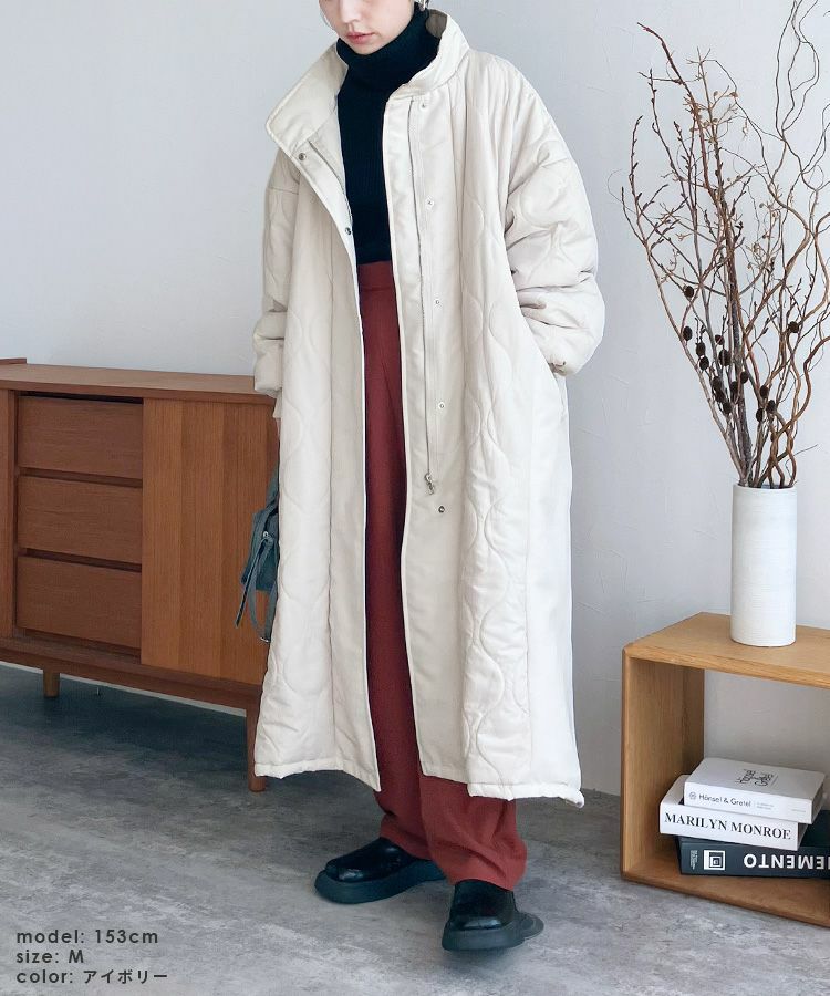キルト切替スタンドネックロングコート(y8128) 宅配便発送