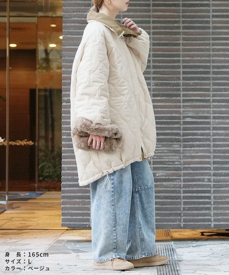 レディース アウター キルティング キルティングコート キルティングジャケット ひょうたん柄 ブルゾン ジャケット ロングコート スタンドカラー 防寒 長袖 カジュアル シンプル 大人女子 30代ファッション 30代コーデ 40代ファッション 40代コーデ バイカラー 配色 カーキ ベージュ ブラック 黒