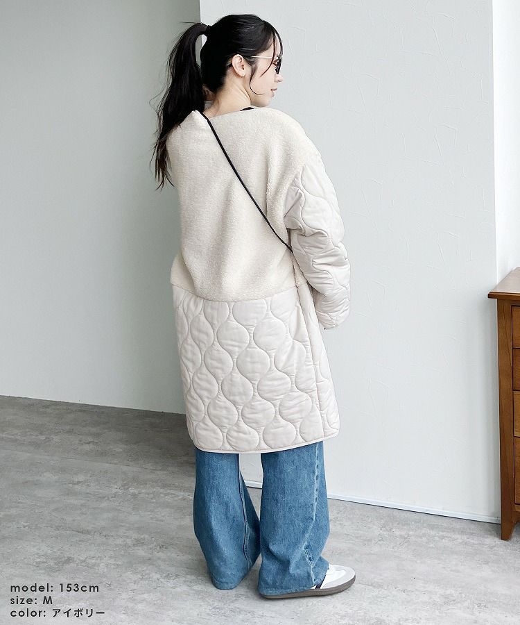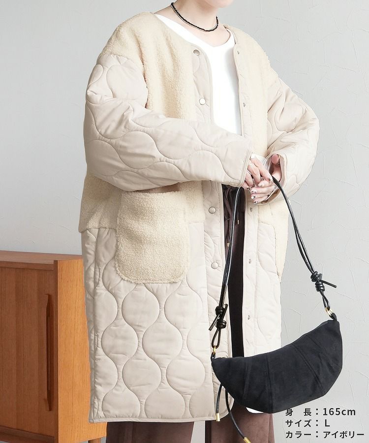 【24時間限定★1,000円OFFクーポン】ノーカラーボア×ひょうたんキルトコート(y9961) 宅配便発送
