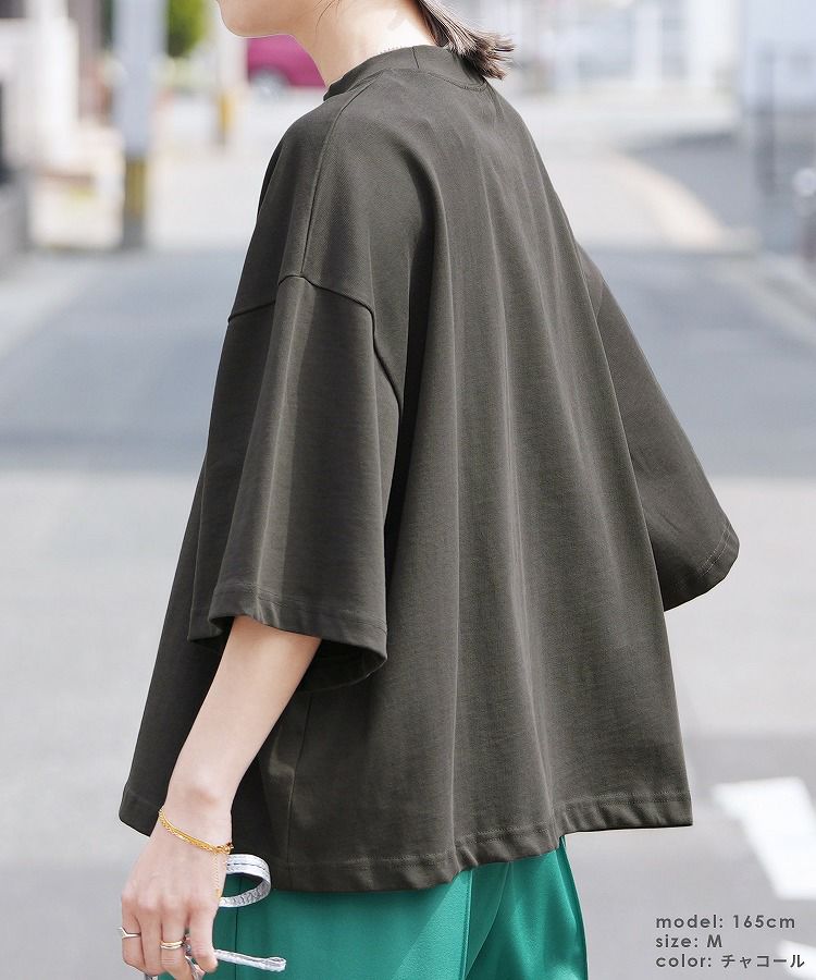モックネック五分袖カットソー(bel-bs-214) ネコポス発送10