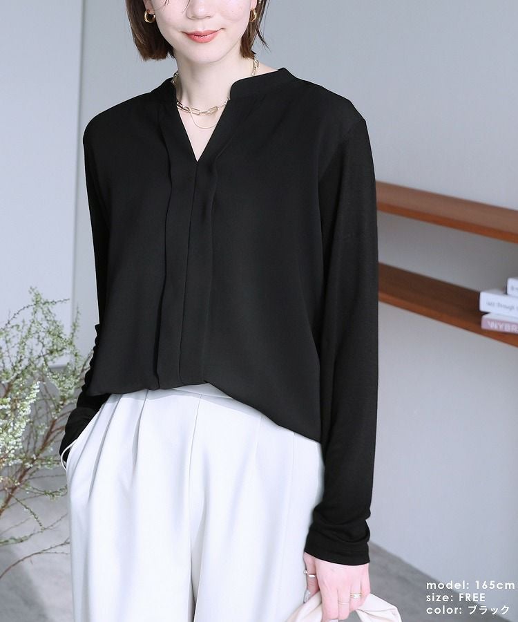 レディース トップス カットソー ブラウス プルオーバー シフォン ジョーゼット シアー エアリー 長袖 スキッパー 無地 カジュアル シンプル キレイめ 通勤服 ビジネス オフィス オフィスカジュアル 大人女子 30代ファッション 30代コーデ ホワイト 白 ブラック 黒