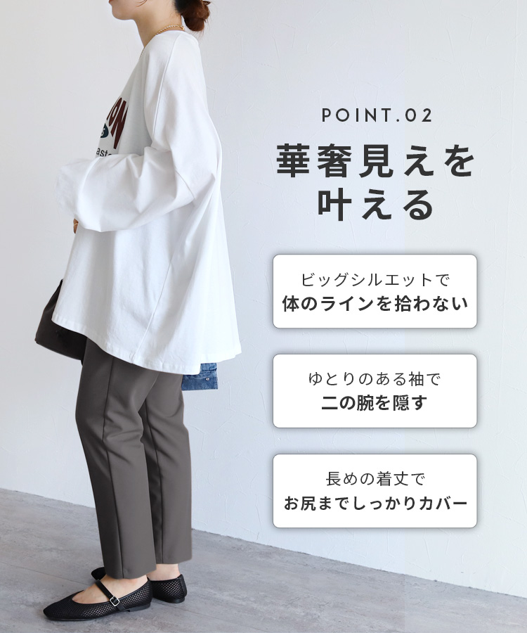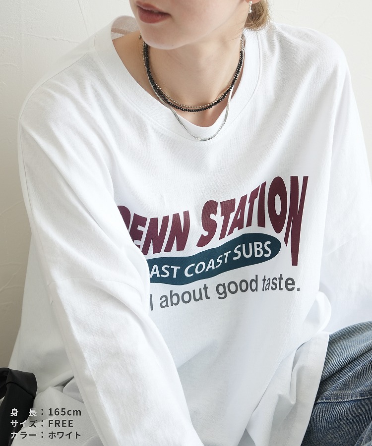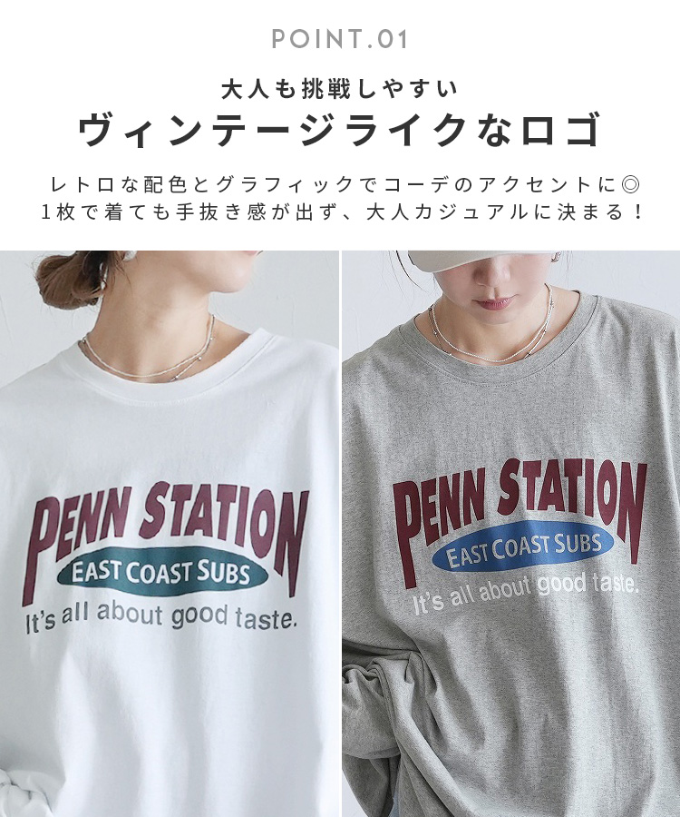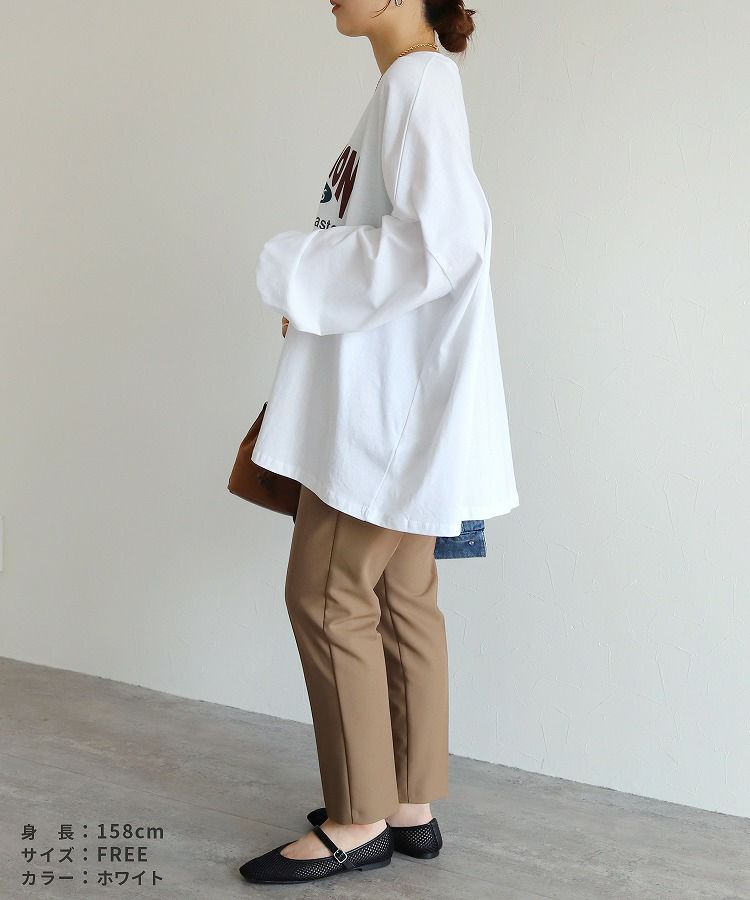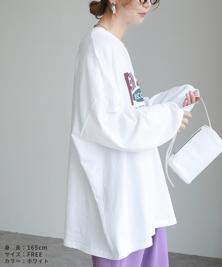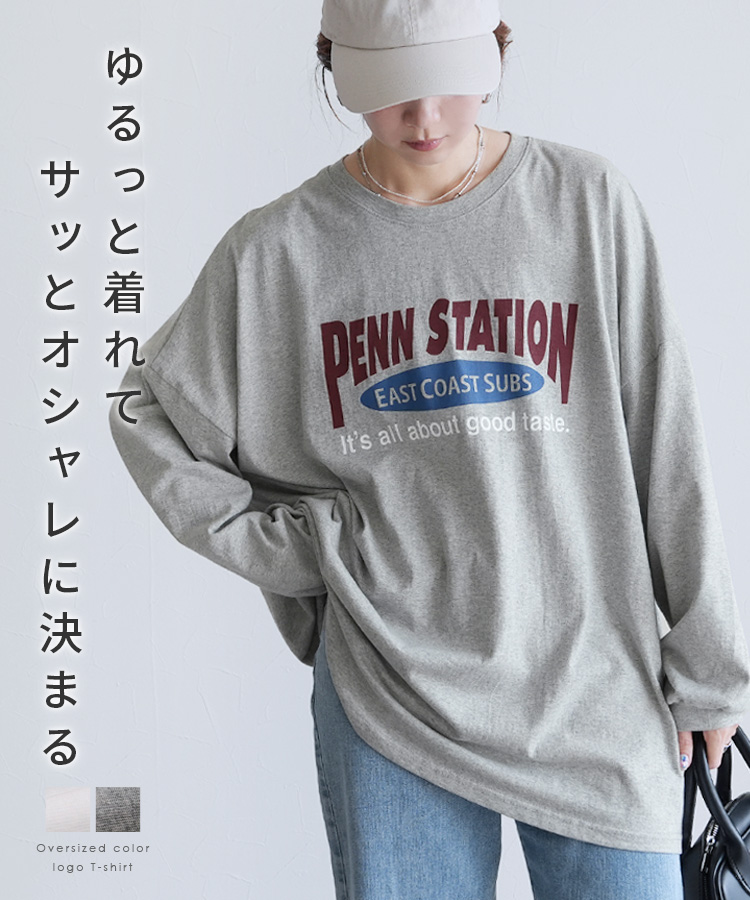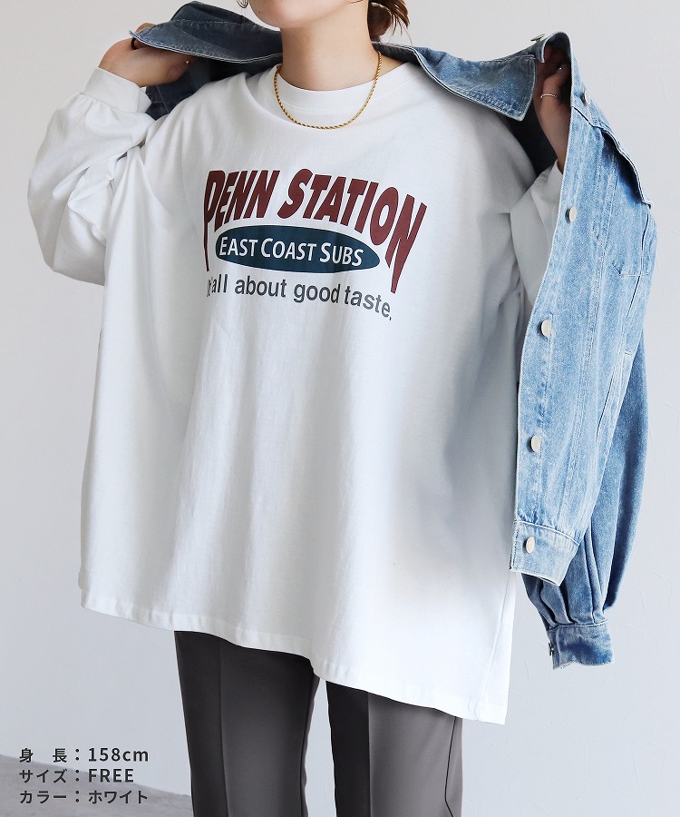 レディース トップス プルオーバー Tシャツ ロンT ロゴT ロゴ プリントロゴ オーバーサイズ ビッグサイズ メンズライク ヴィンテージ 秋 長袖 クルーネック 丸首 カジュアル シンプル 大人女子 30代ファッション 30代コーデ プリント オートミール ホワイト 白 ブラック 黒 グレー