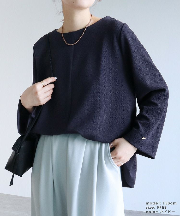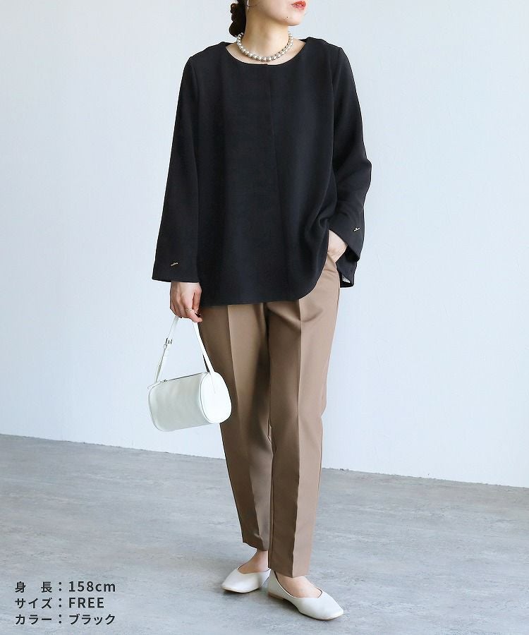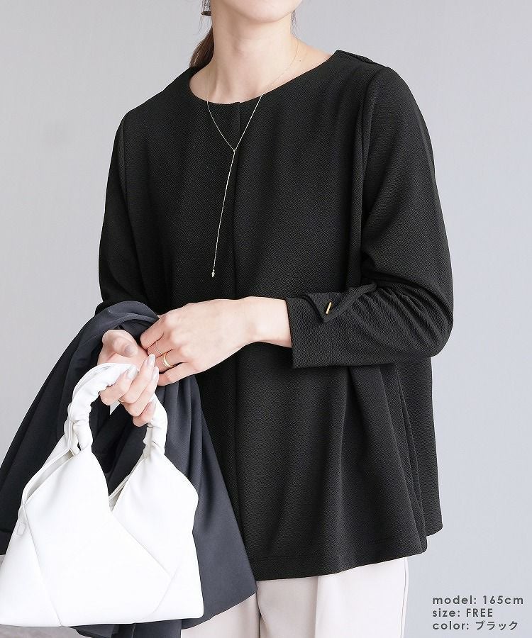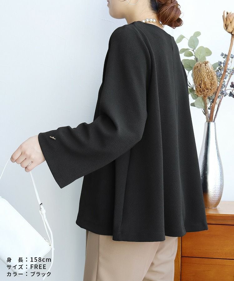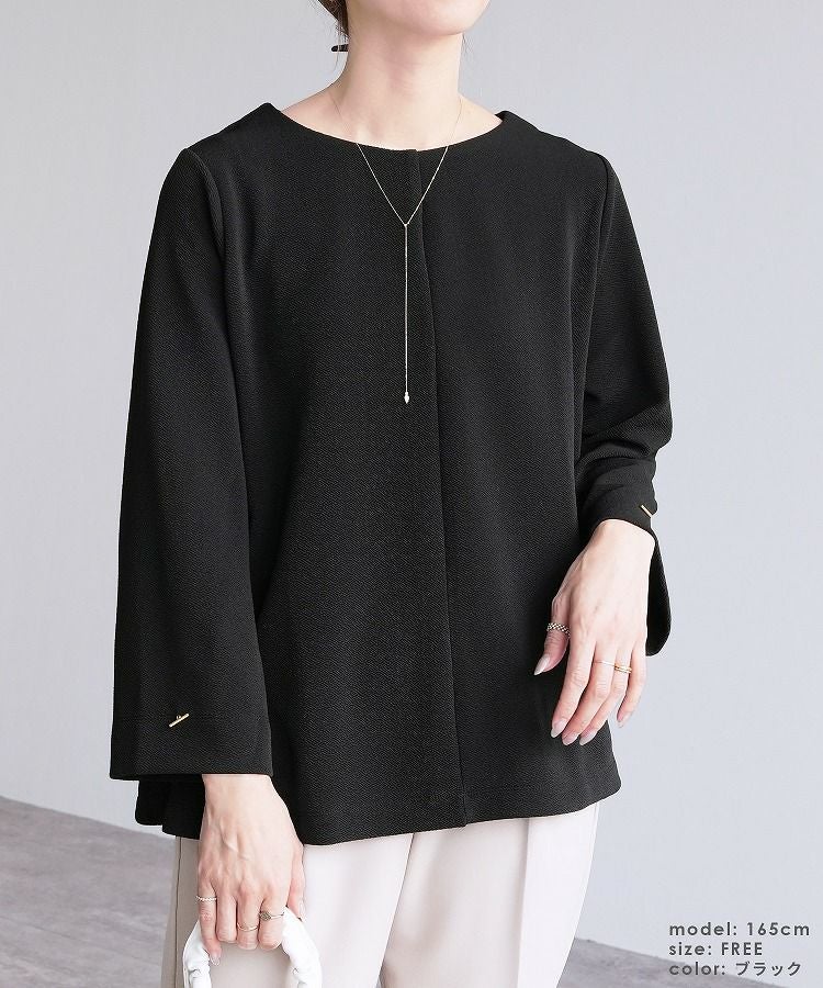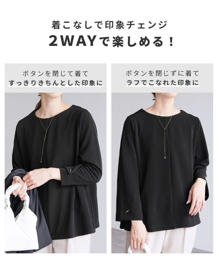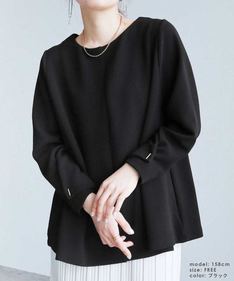 レディース トップス プルオーバー 上品 きれいめ 袖ボタン トグルボタン シボ感 シワ感 長袖 ベルスリーブ 大人女子 30代ファッション 30代コーデ モカ ネイビー ブラック