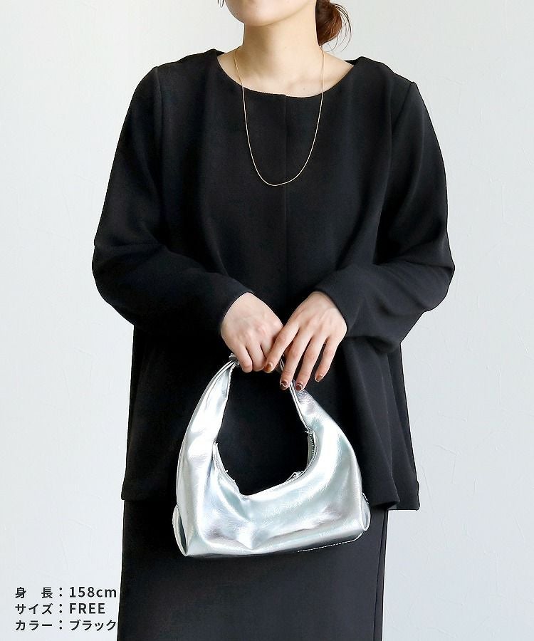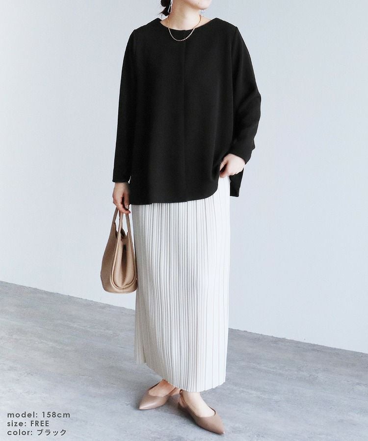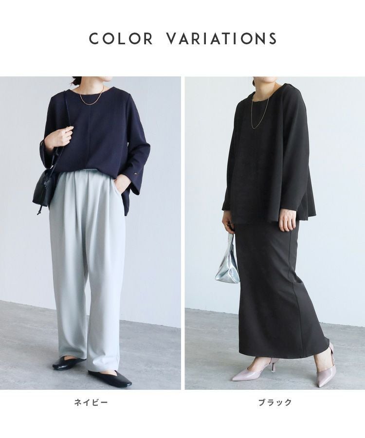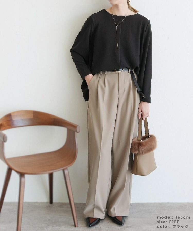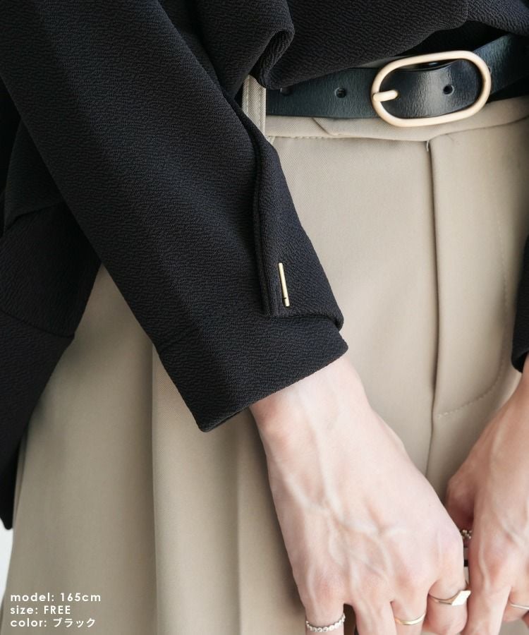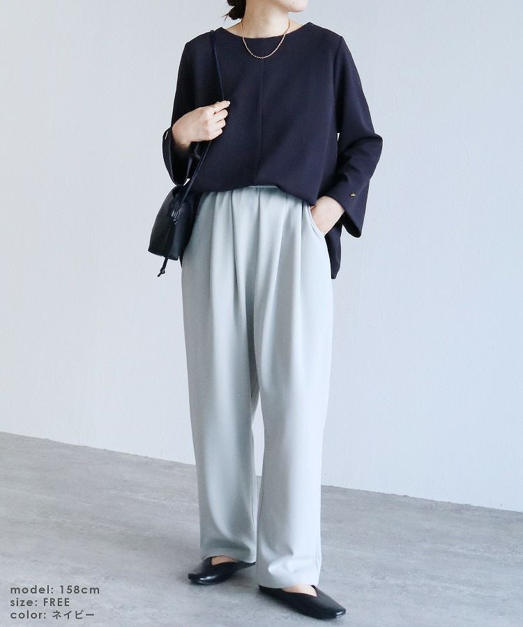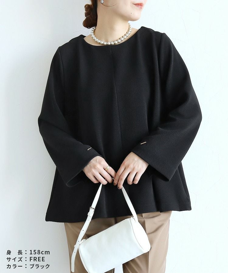 レディース トップス プルオーバー 上品 きれいめ 袖ボタン トグルボタン シボ感 シワ感 長袖 ベルスリーブ 大人女子 30代ファッション 30代コーデ モカ ネイビー ブラック