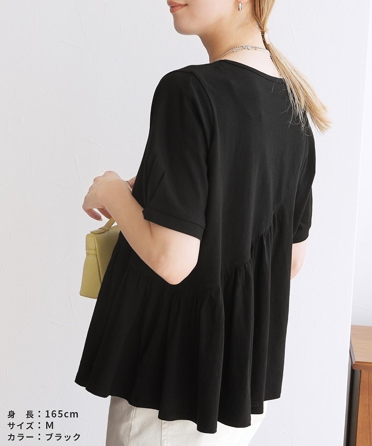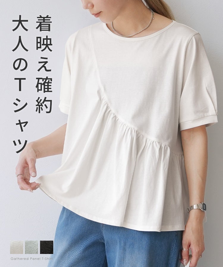 ギャザー切替Tシャツ(bel-bl-26019) ネコポス発送10