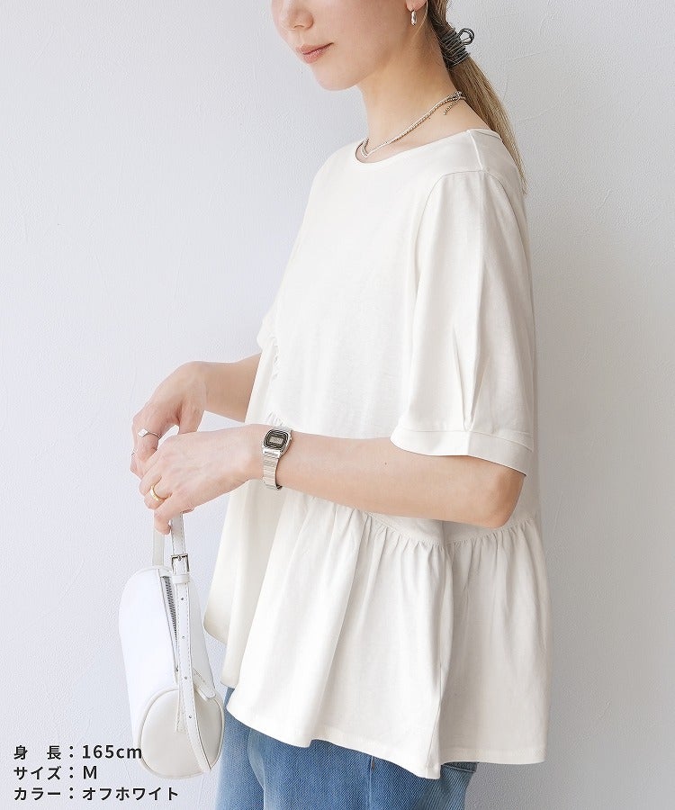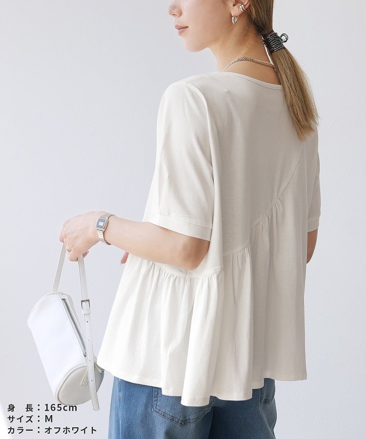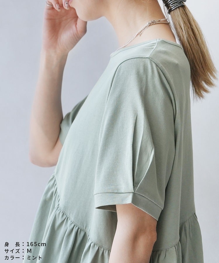 お腹カバー レディース トップス カットソー Tシャツ 無地T 無地 プルオーバー 半袖 たぽん袖 袖タック ふんわり袖 ギャザー 切替 ふんわり裾 フレア裾 ゆったり 楽ちん カジュアル シンプル ビッグサイズ オーバーサイズ ビッグシルエット オーバーシルエット 体型カバー 二の腕カバー コットン100% 綿100% 白 ホワイト アイボリー 黒 ブラック ミント ペールグリーン くすみカラー 女性 お洒落 オシャレ おしゃれ 春 夏 秋
