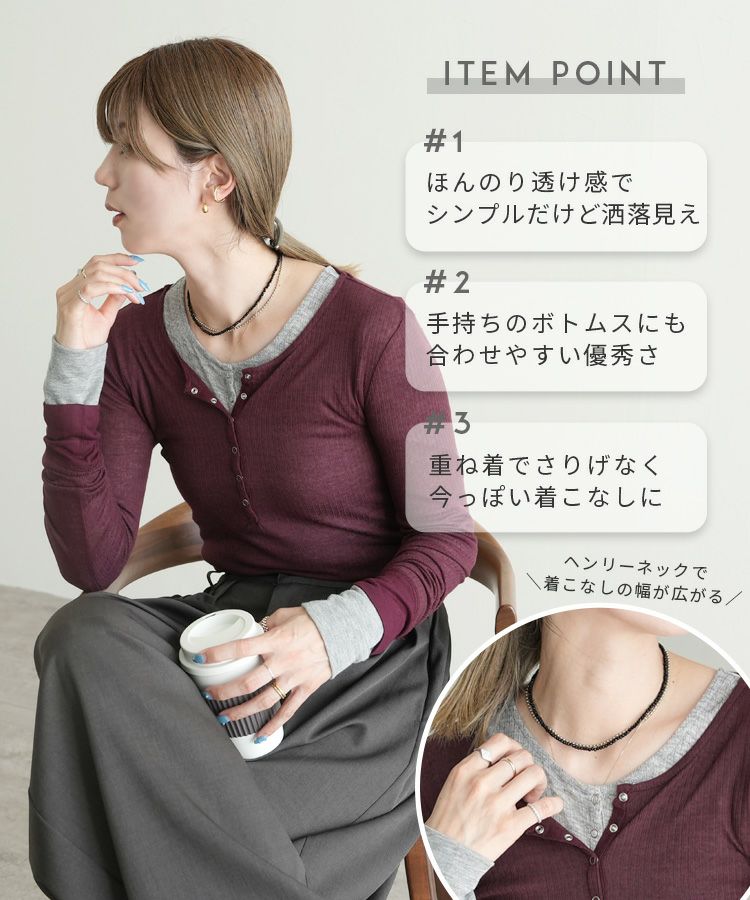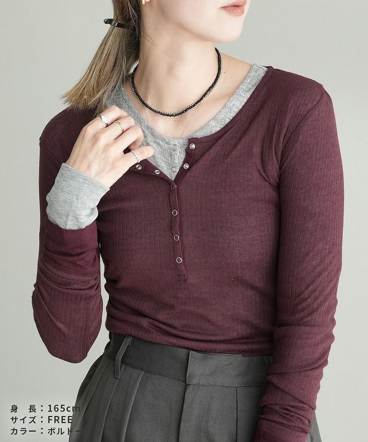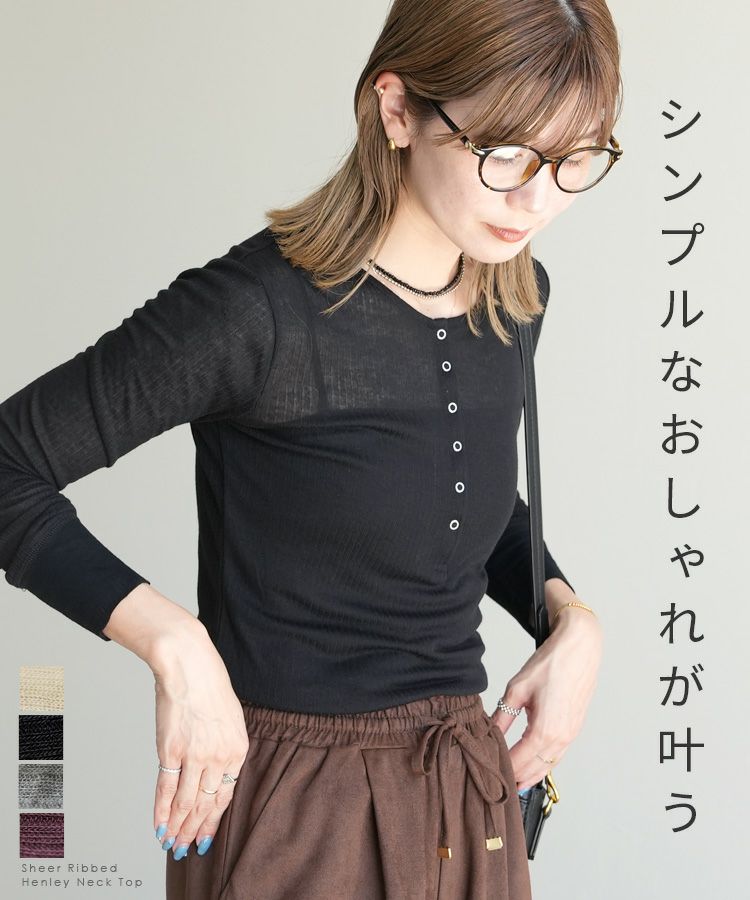 シアーテレコヘンリーネックトップス(day254521) reca レカ ネコポス発送10
