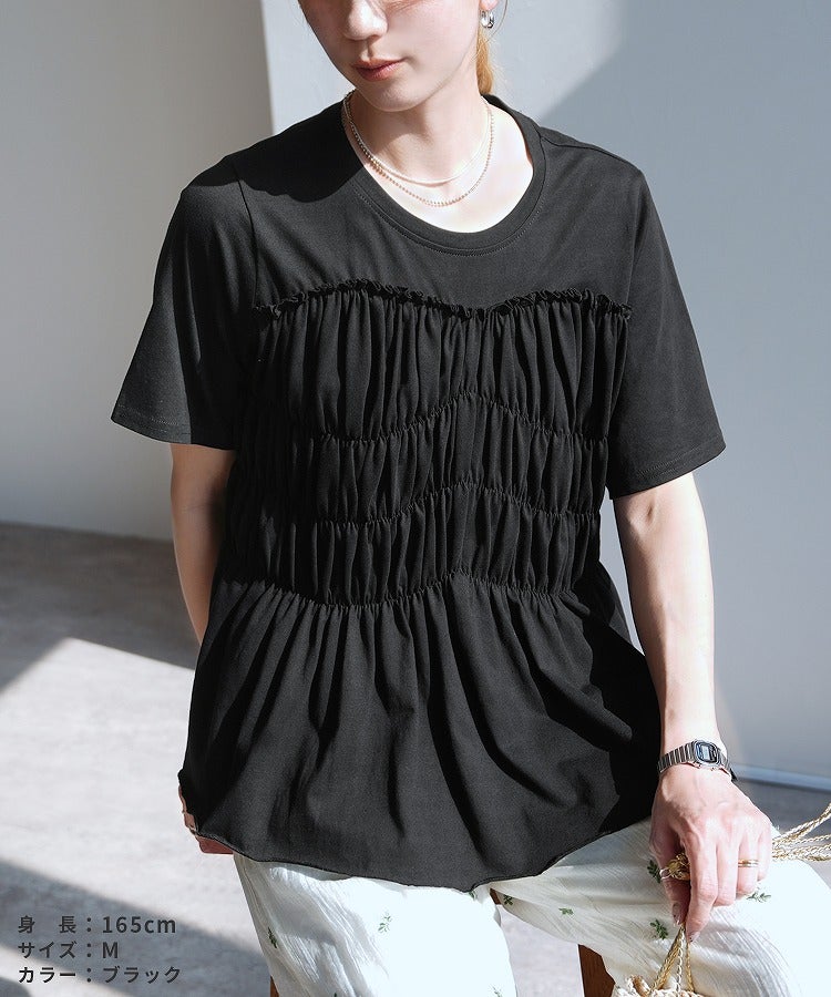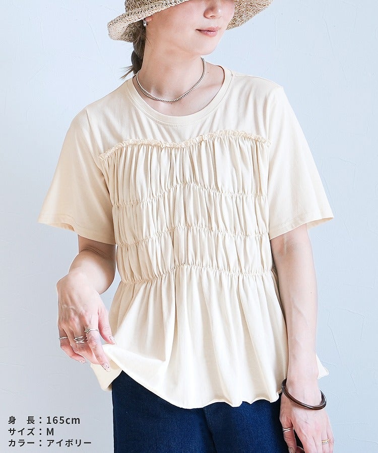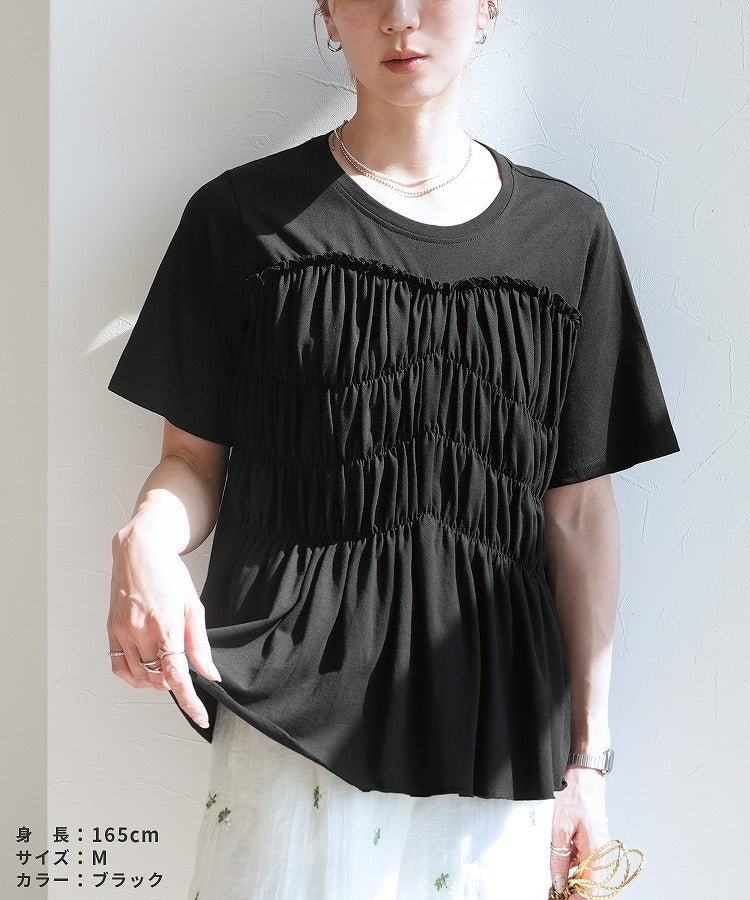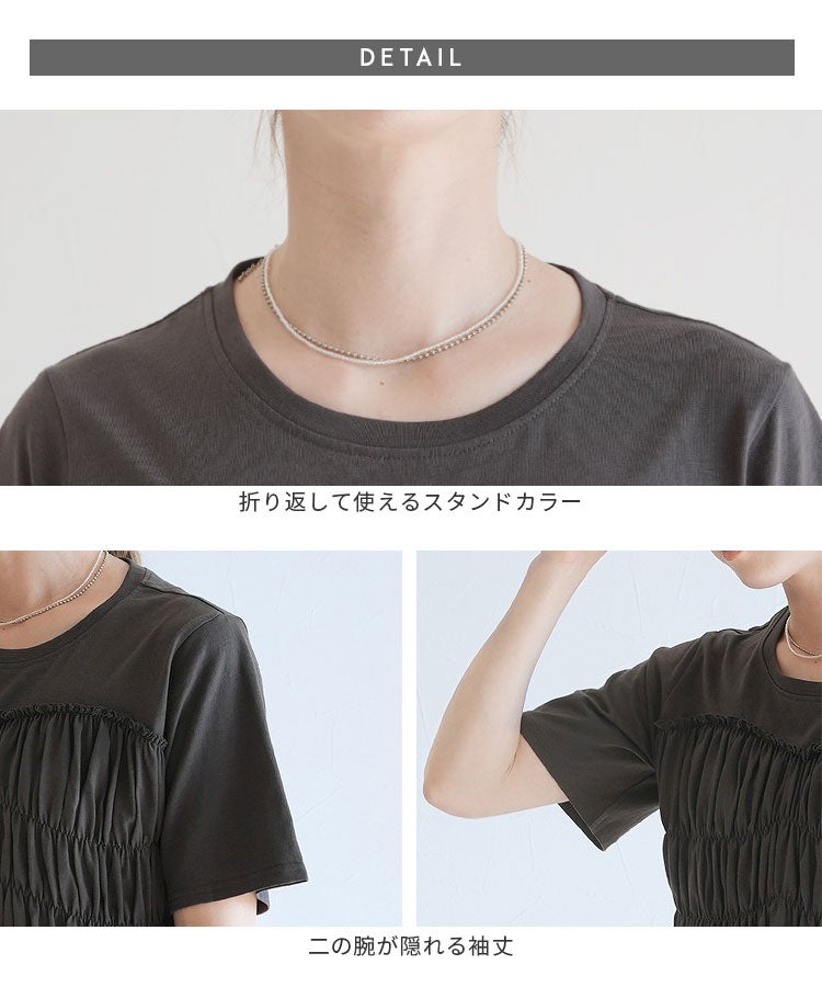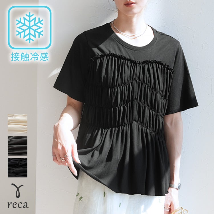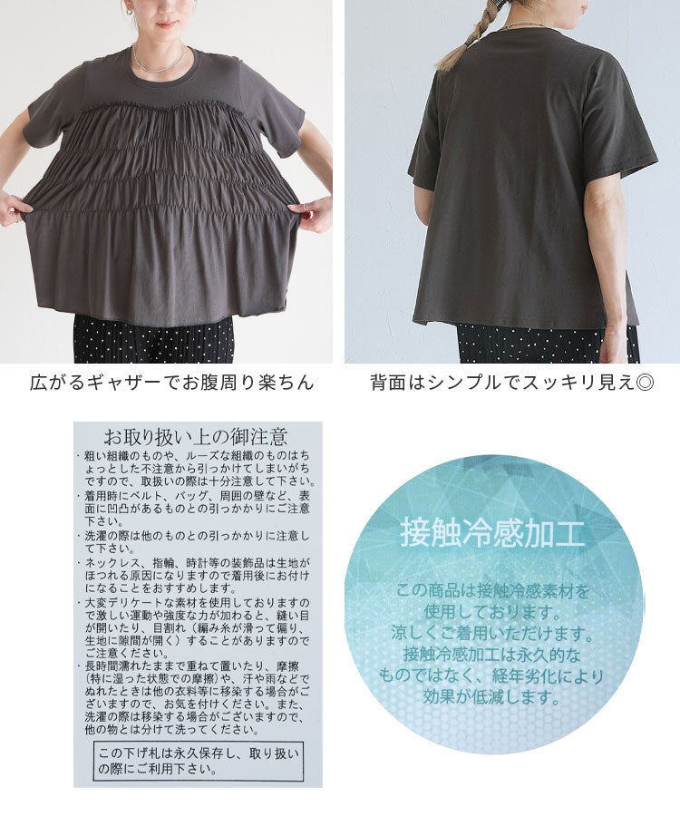 接触冷感 ギャザーカットソー(bel-bl-26015) ネコポス発送10