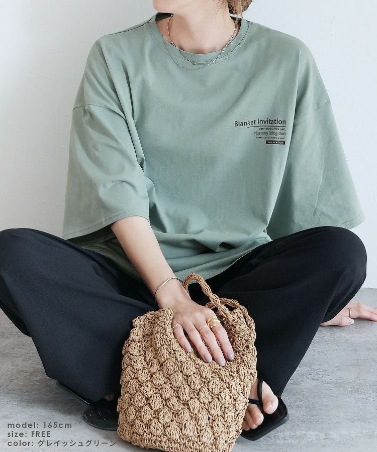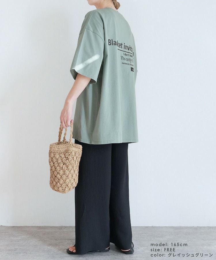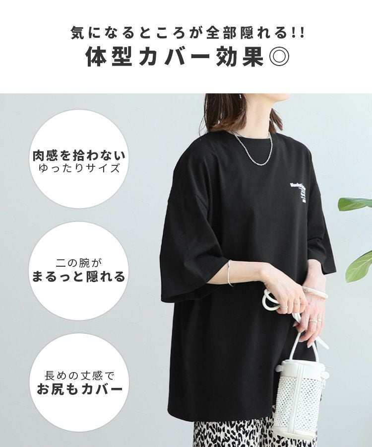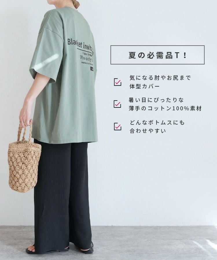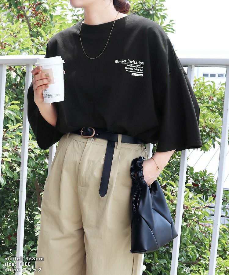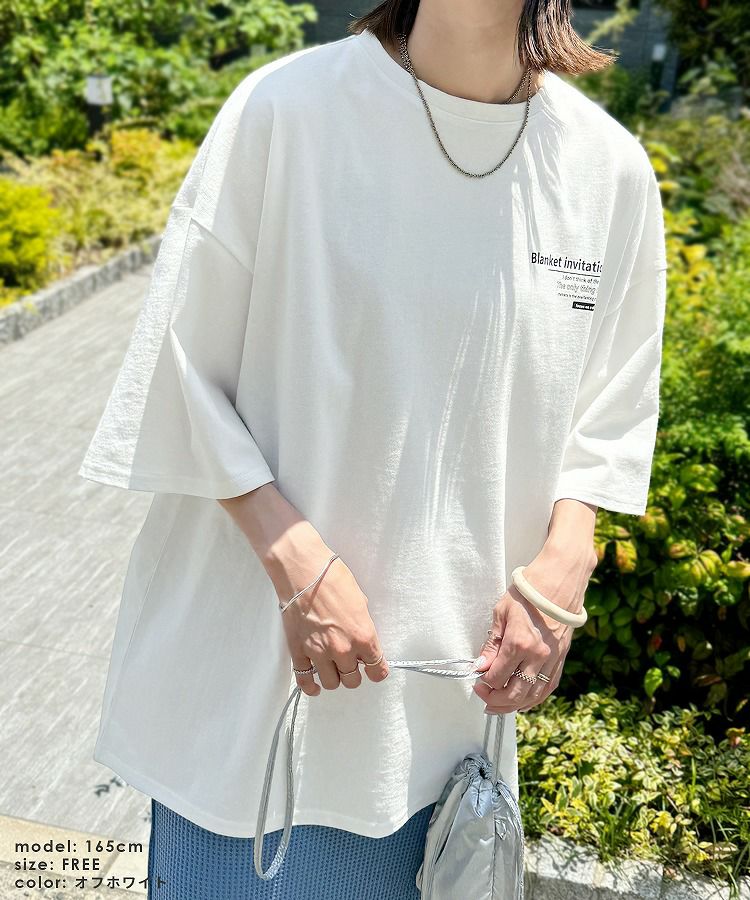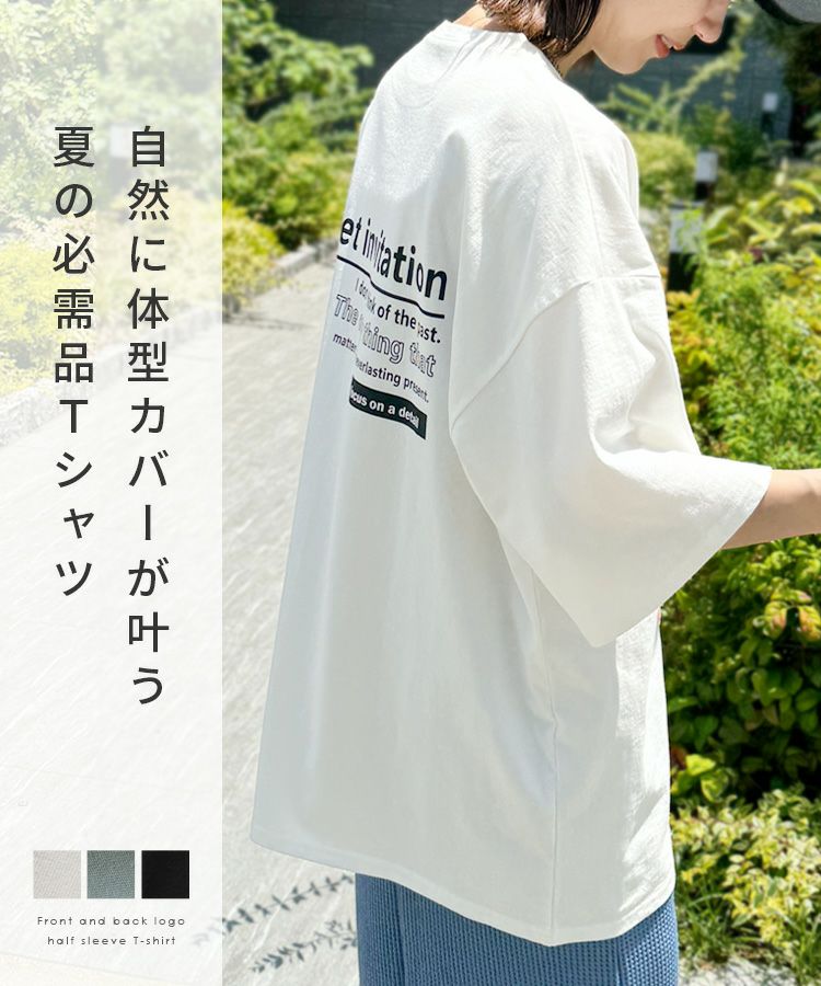 前後ロゴ五分袖オーバーサイズTシャツ(bel-blc-6115) ネコポス発送10
