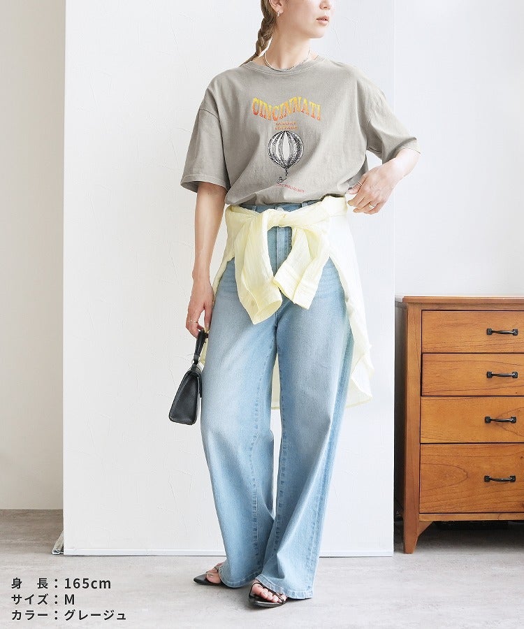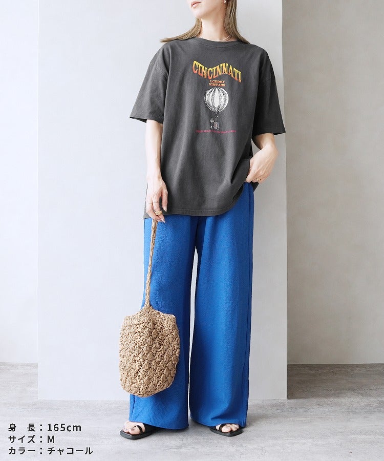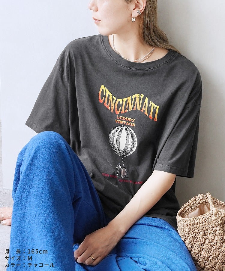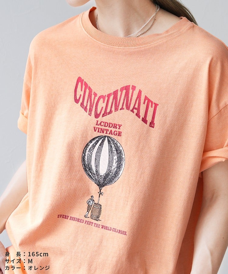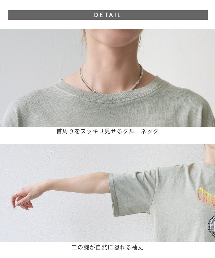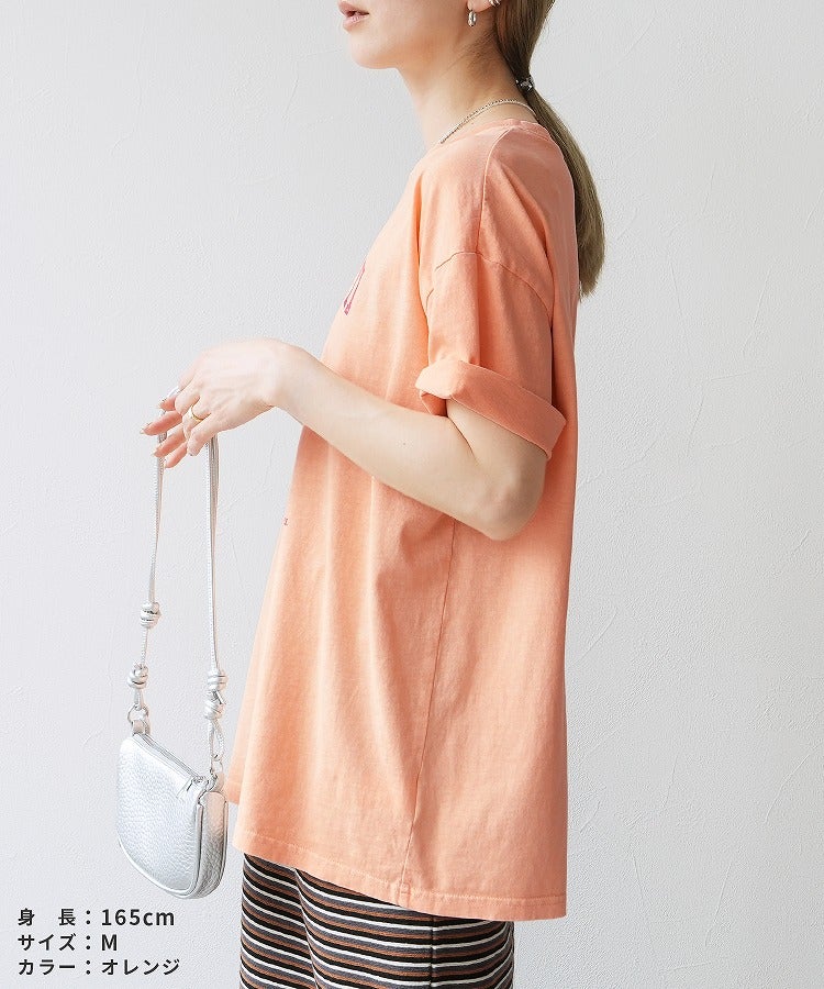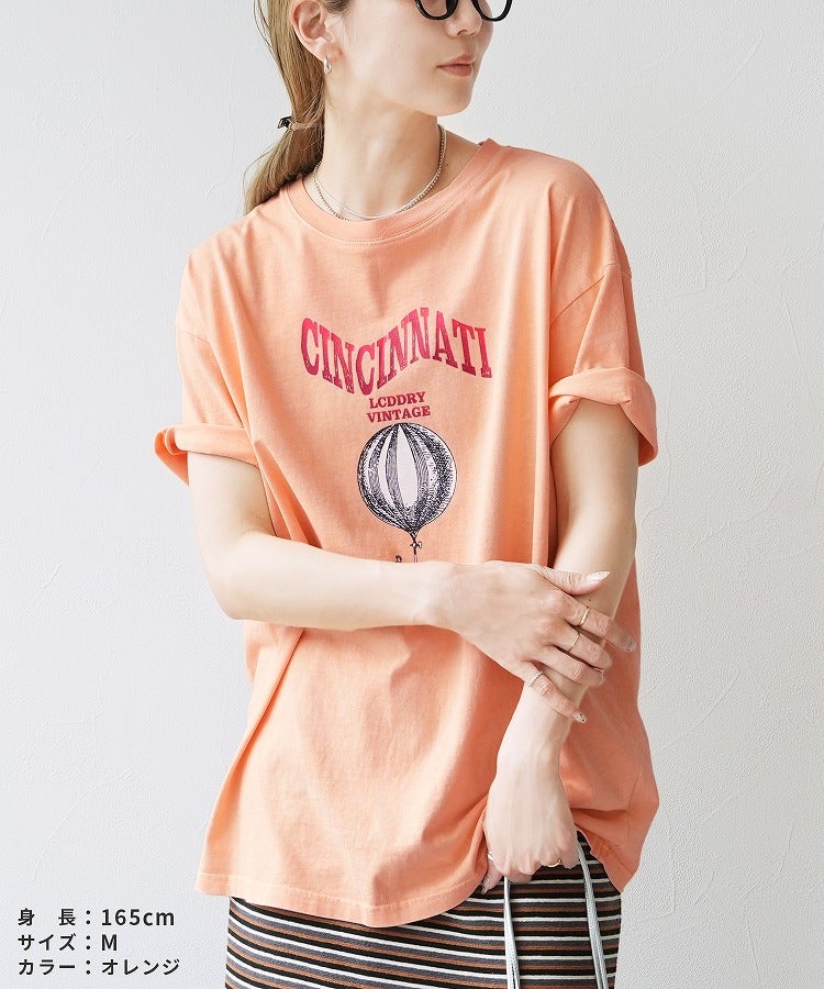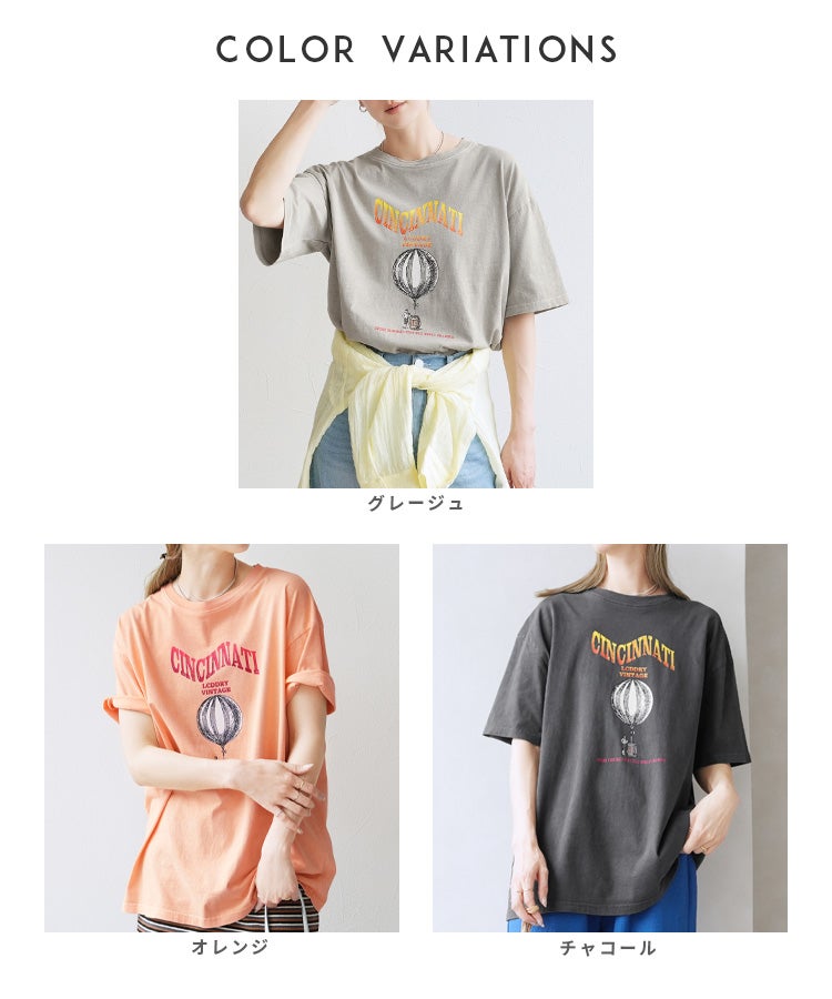 レディース トップス プルオーバー ロゴプリント プリントT ロゴT ワンポイント ヴィンテージ加工 レトロ 着回し オーバーサイズ プリント 半袖 五分袖 ワンポイント 体型カバー 二の腕カバー ゆったり カジュアル 丸首 シンプル 夏 春 秋 大人女子 大人カジュアル 30代ファッション 30代コーデ チャコール グレー グレージュ オレンジ くすみカラー 大人カラー 配色
