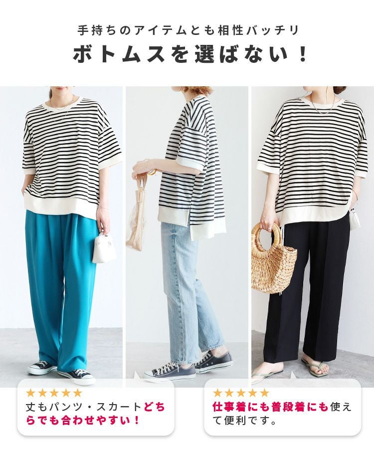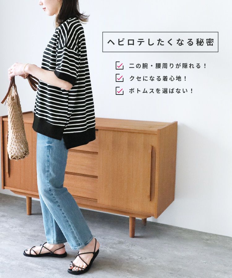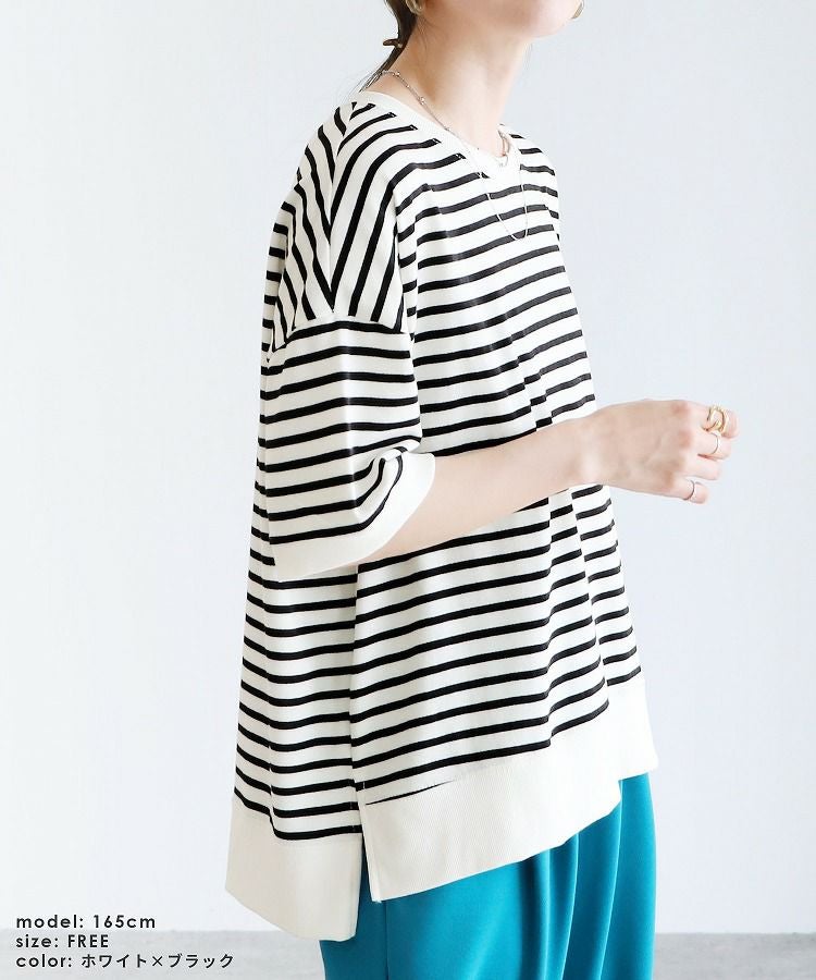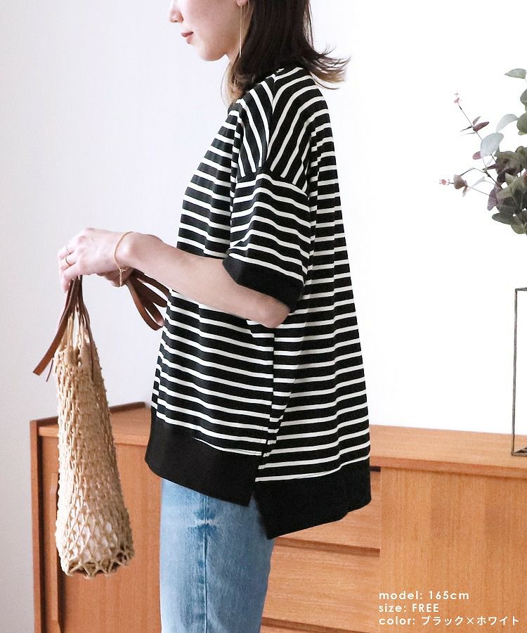 サイドスリットボーダーTシャツ(R22160-v) ネコポス発送10