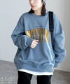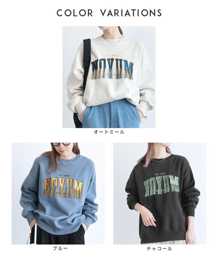 レディース トップス スウェット トレーナー プルオーバー オーバーサイズ メンズライク ロゴ ロゴ刺繍 ロゴスウェット ロゴT フリンジ ワンポイント 長袖 クルーネック 丸首 リブ カジュアル シンプル 大人女子 30代ファッション 30代コーデ 配色ロゴ オートミール ホワイト 白 チャコール グレー グリーン イエロー ブルー