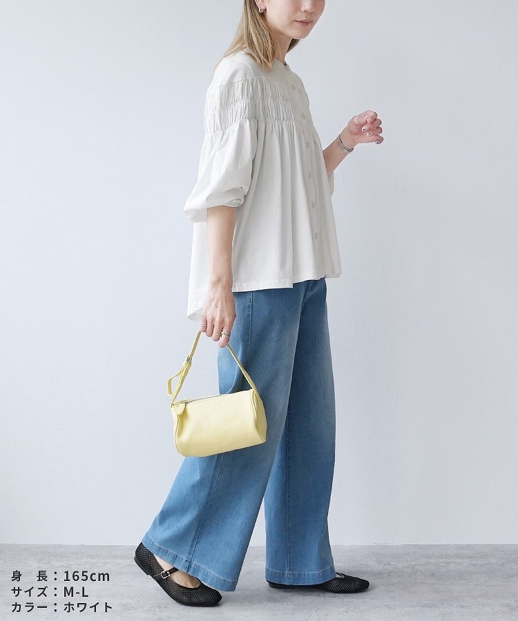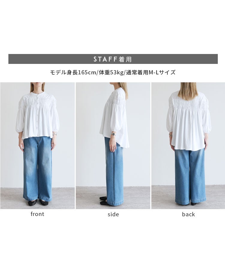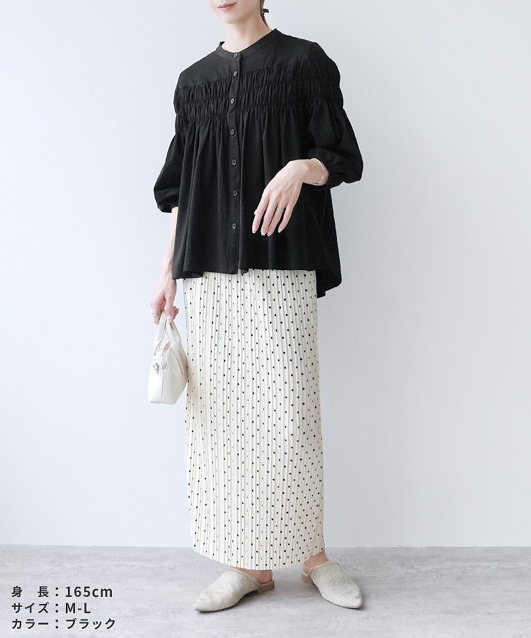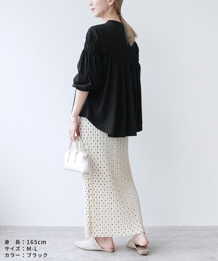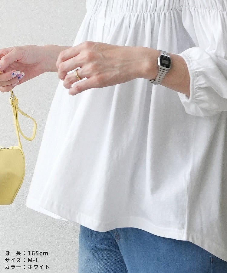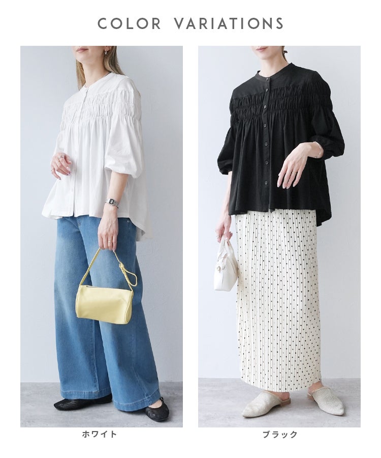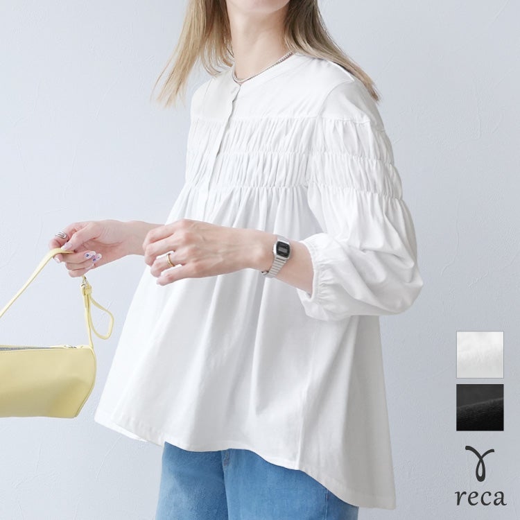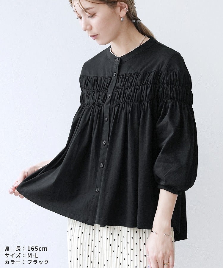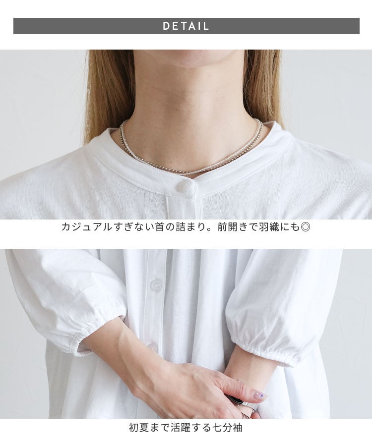 レディース トップス カットソー シャツ ブラウス 前開き 羽織り ギャザー 長袖 クルーネック 丸首 前後差 後ろ下がり 大きめ ゆったり 体型カバー 楽ちん 綿100% シンプル 大人女子 30代ファッション オフィススタイル オフィスカジュアル オフィス 会社 職場 職場着 仕事着 仕事 通勤 ol ホワイト 白 ブラック 黒
