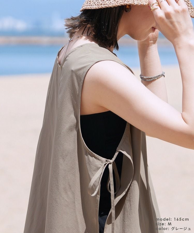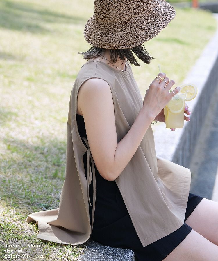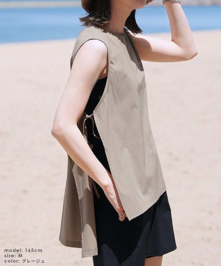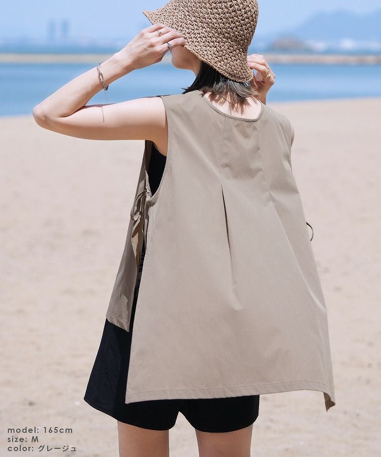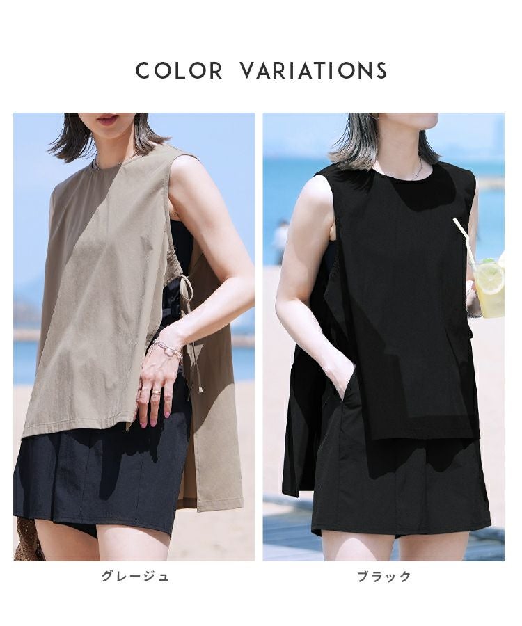 レディース プルオーバー トップス ラッシュガード セットアップ セットアップ対応 レイヤード ベスト サイドリボン 水陸両用 紫外線対策 UVカット 接触冷感 吸水速乾 ストレッチ 伸縮 シンプル カジュアル 楽ちん 長袖 体型カバー プール 海 レジャー アウトドア タウンユース ノースリーブ 華奢見え 大人女子 30代ファッション ママコーデ ママファッション 30代コーデ 無地 グレージュ グレーベージュ ブラック 黒
