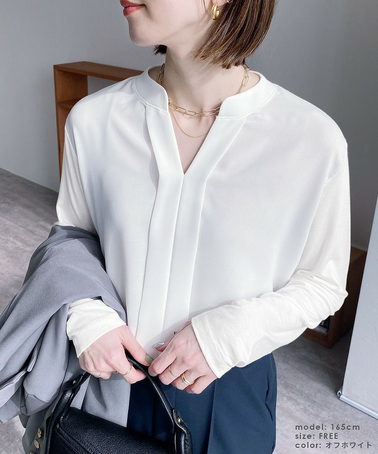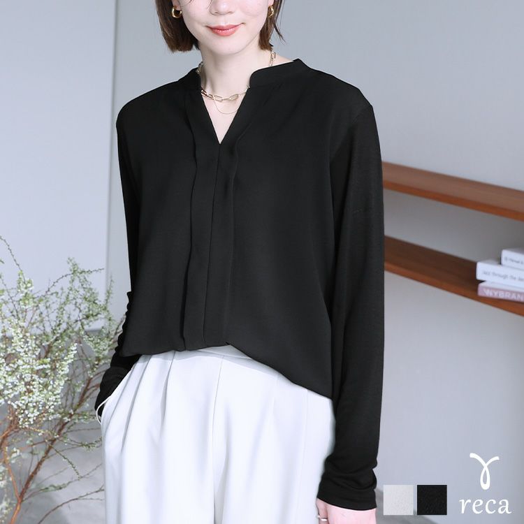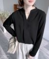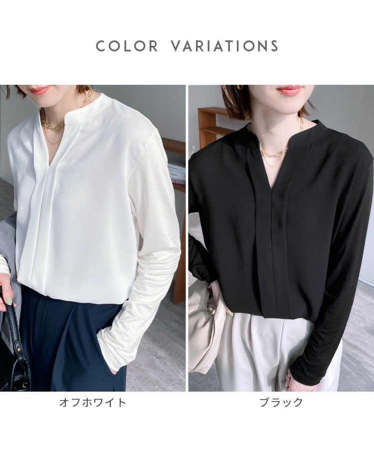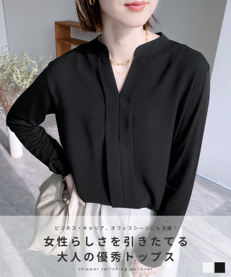 レディース トップス カットソー ブラウス プルオーバー シフォン ジョーゼット シアー エアリー 長袖 スキッパー 無地 カジュアル シンプル キレイめ 通勤服 ビジネス オフィス オフィスカジュアル 大人女子 30代ファッション 30代コーデ ホワイト 白 ブラック 黒