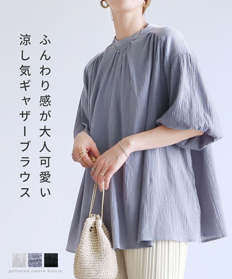 袖ギャザーブラウス(dec-cm-1004) ネコポス発送10