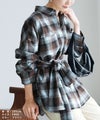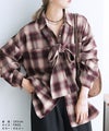 ボウタイ付きチェック柄オーバーサイズシャツ(p246542set) reca レカ ネコポス発送10