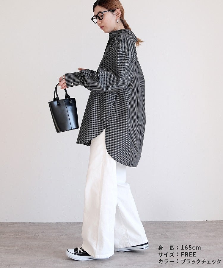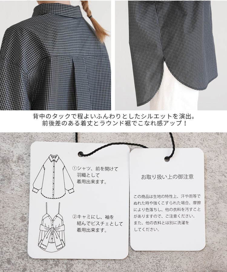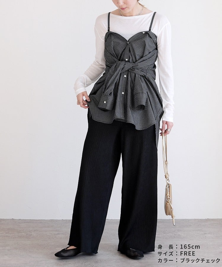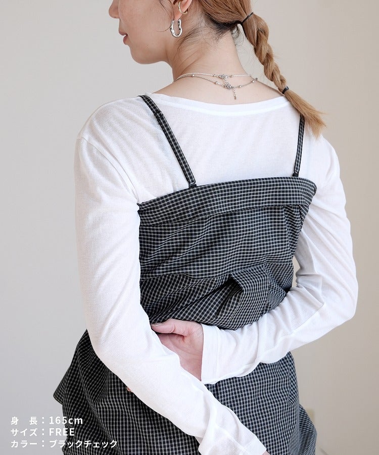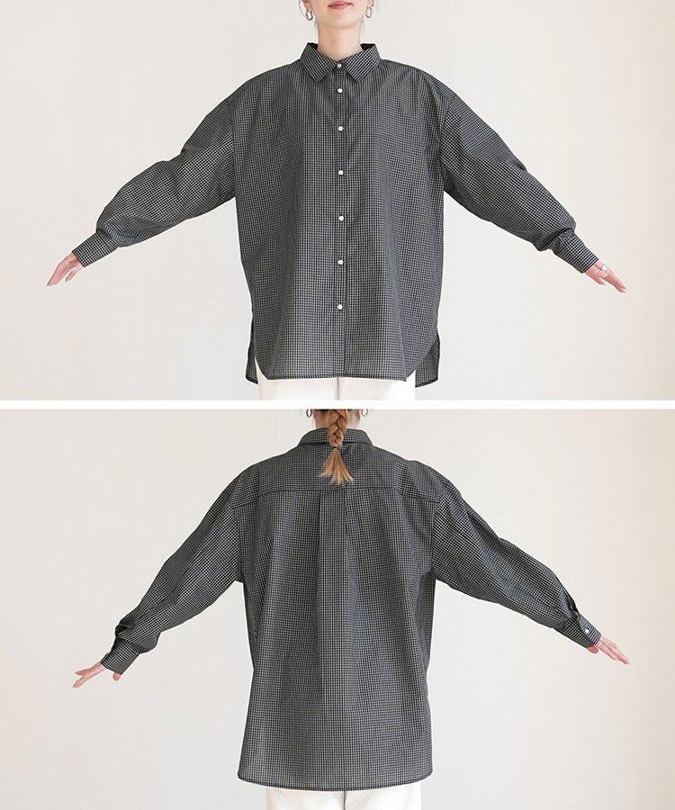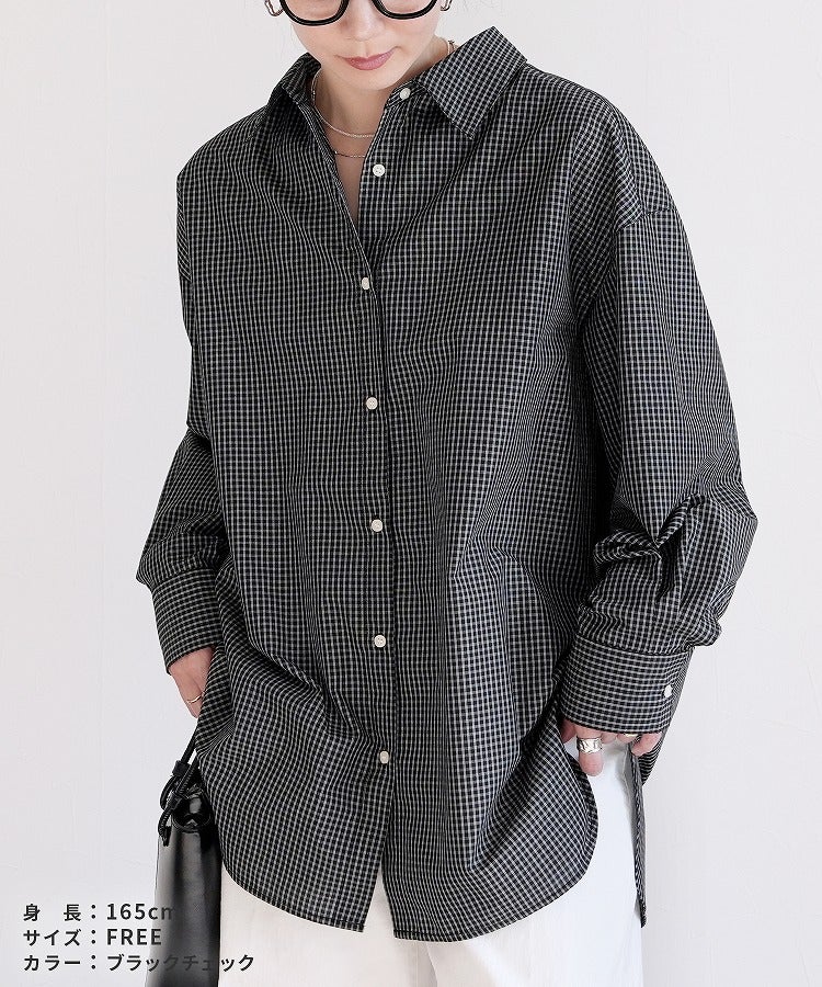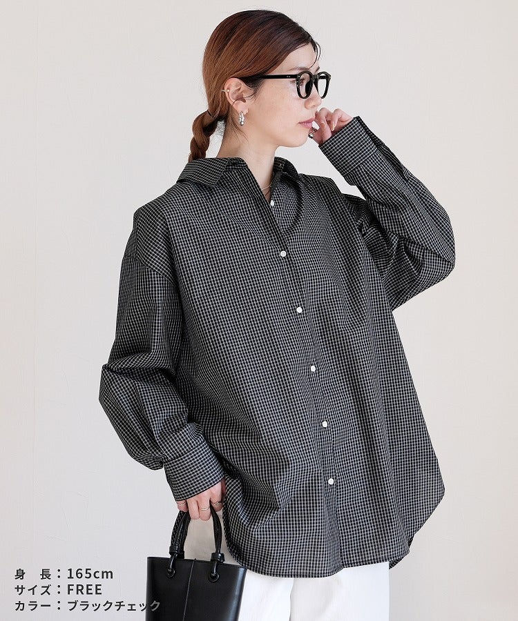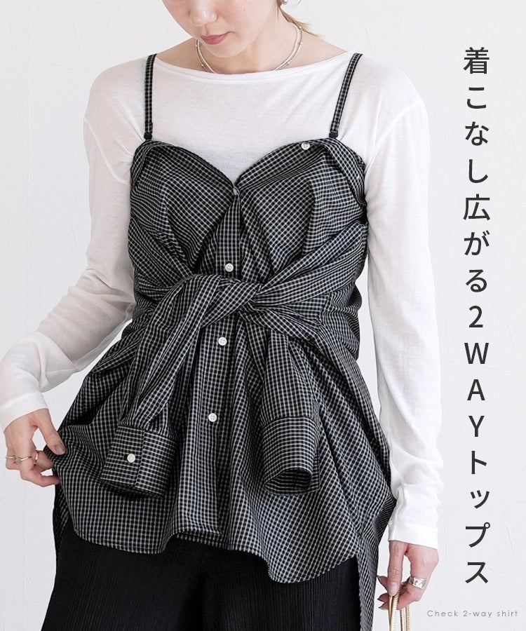 レディース トップス シンプル カジュアル フェミニン レイヤード シャツ 長袖 羽織 ビスチェ 着回し 体型カバー オーバーサイズ ゆったり 抜き襟 春 夏 秋 大人女子 大人カジュアル 30代ファッション 30代コーデ 40代ファッション 40代コーデ ブラック チェック