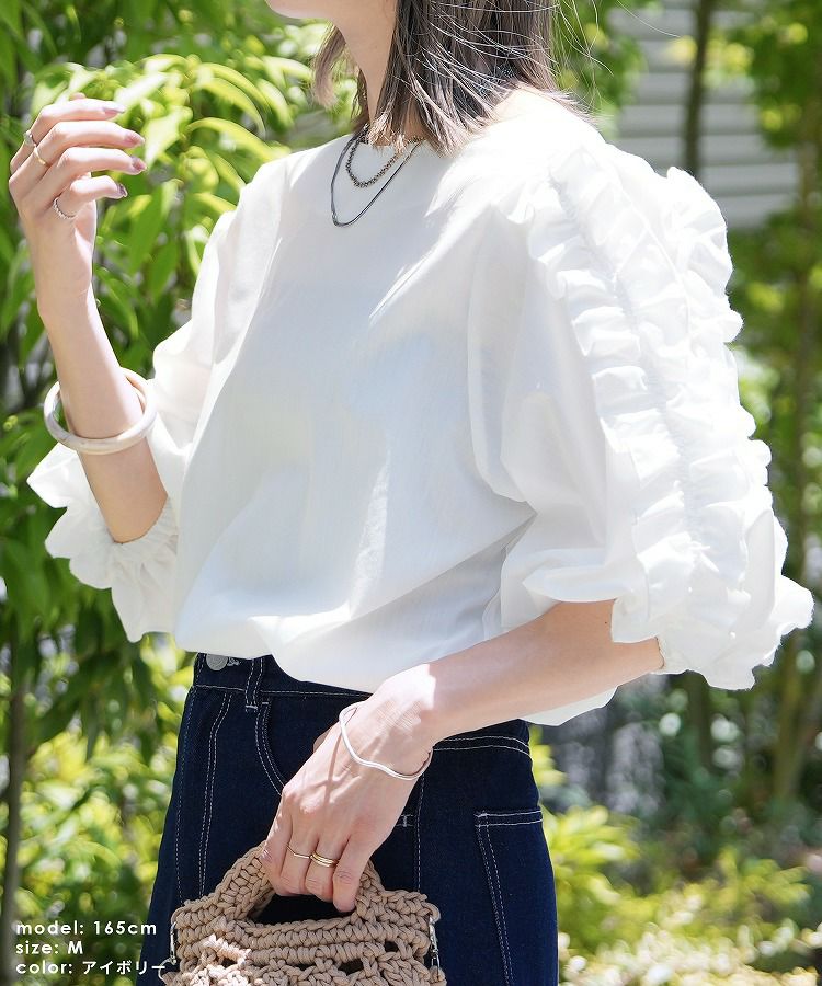 フリルスリーブブラウス(y4461) ネコポス発送10