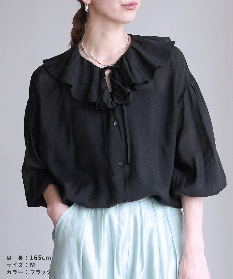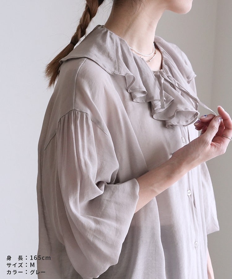 フリルカラーシアーブラウス(y4543) ネコポス発送10