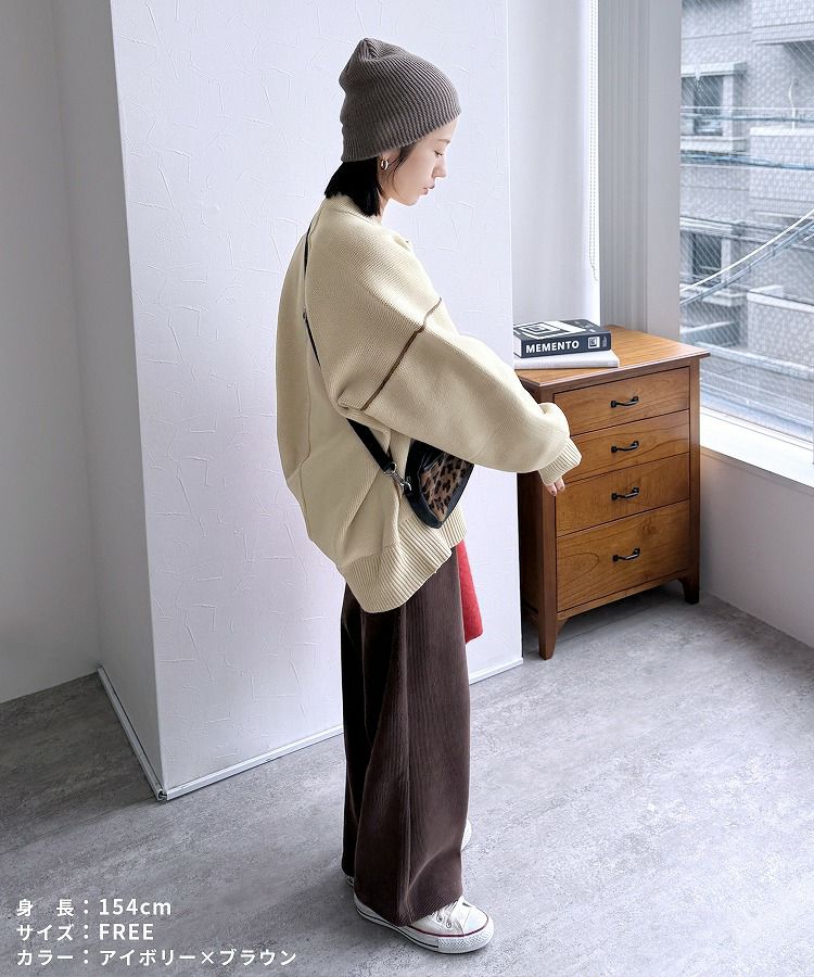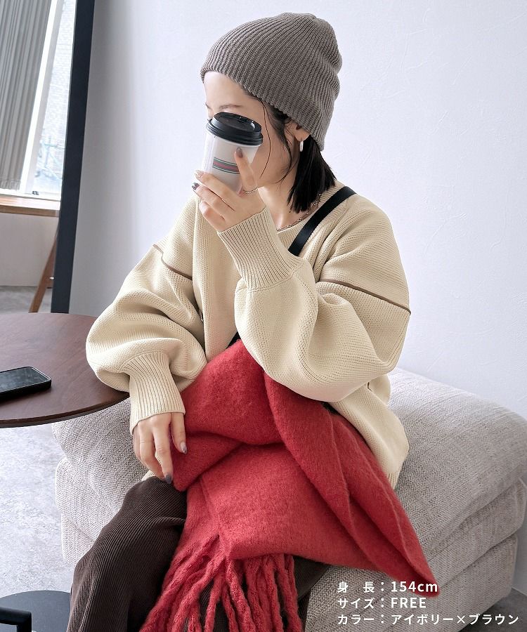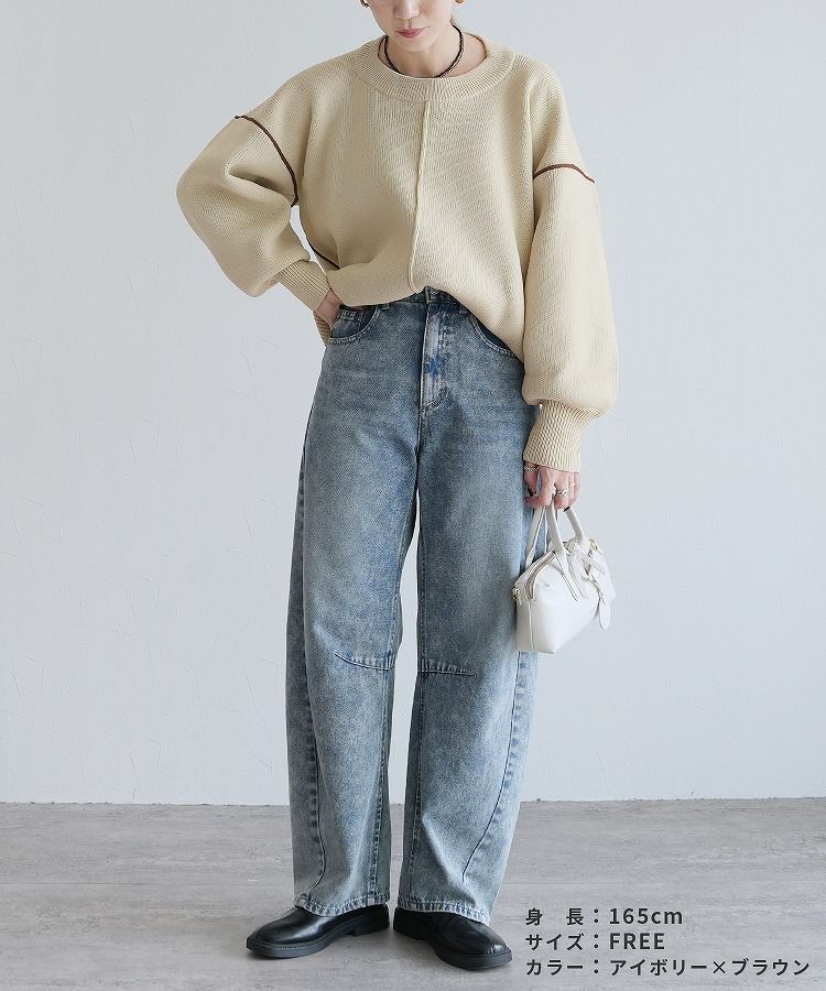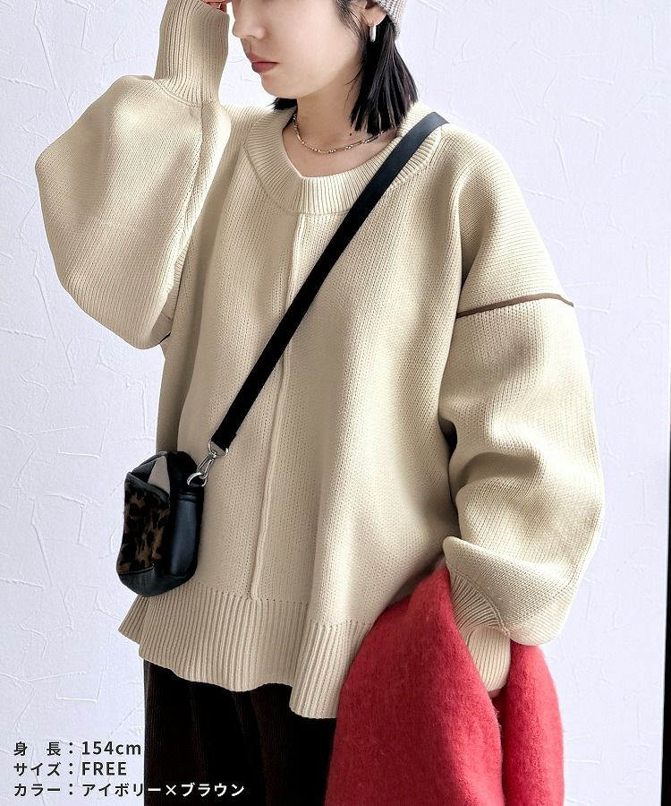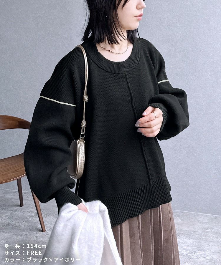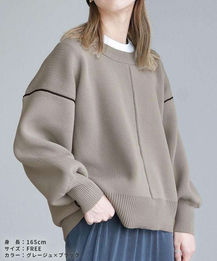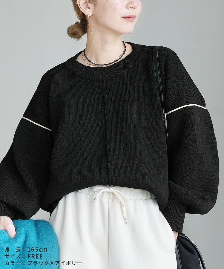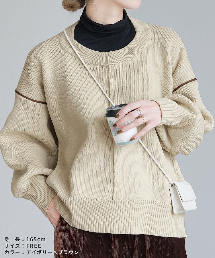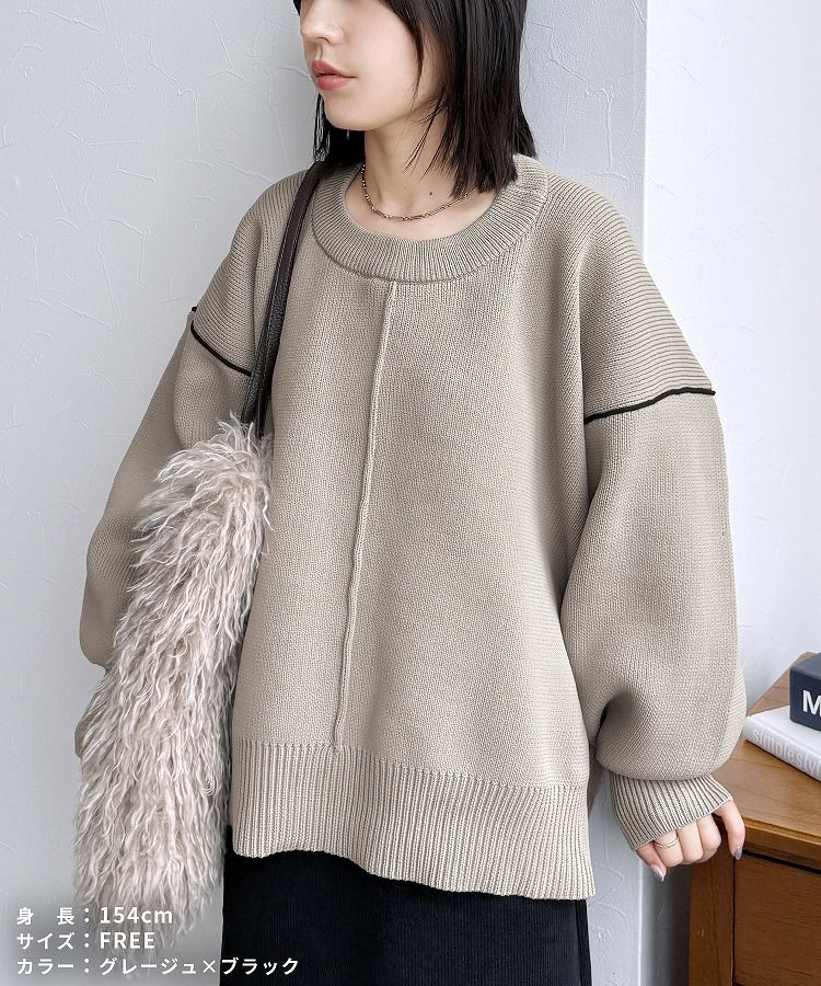 配色ラインパイピングドルマンニット(bel-db-25056) 宅配便発送