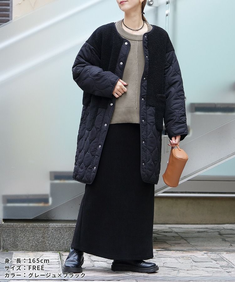 コーデアイテム: ノーカラーボア×ひょうたんキルトコート /コーデュロイ裏フリースタイトスカート