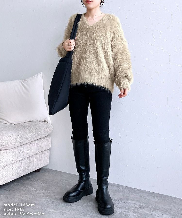 フェザーヤーンVネックプルオーバー(day165701) 宅配便発送